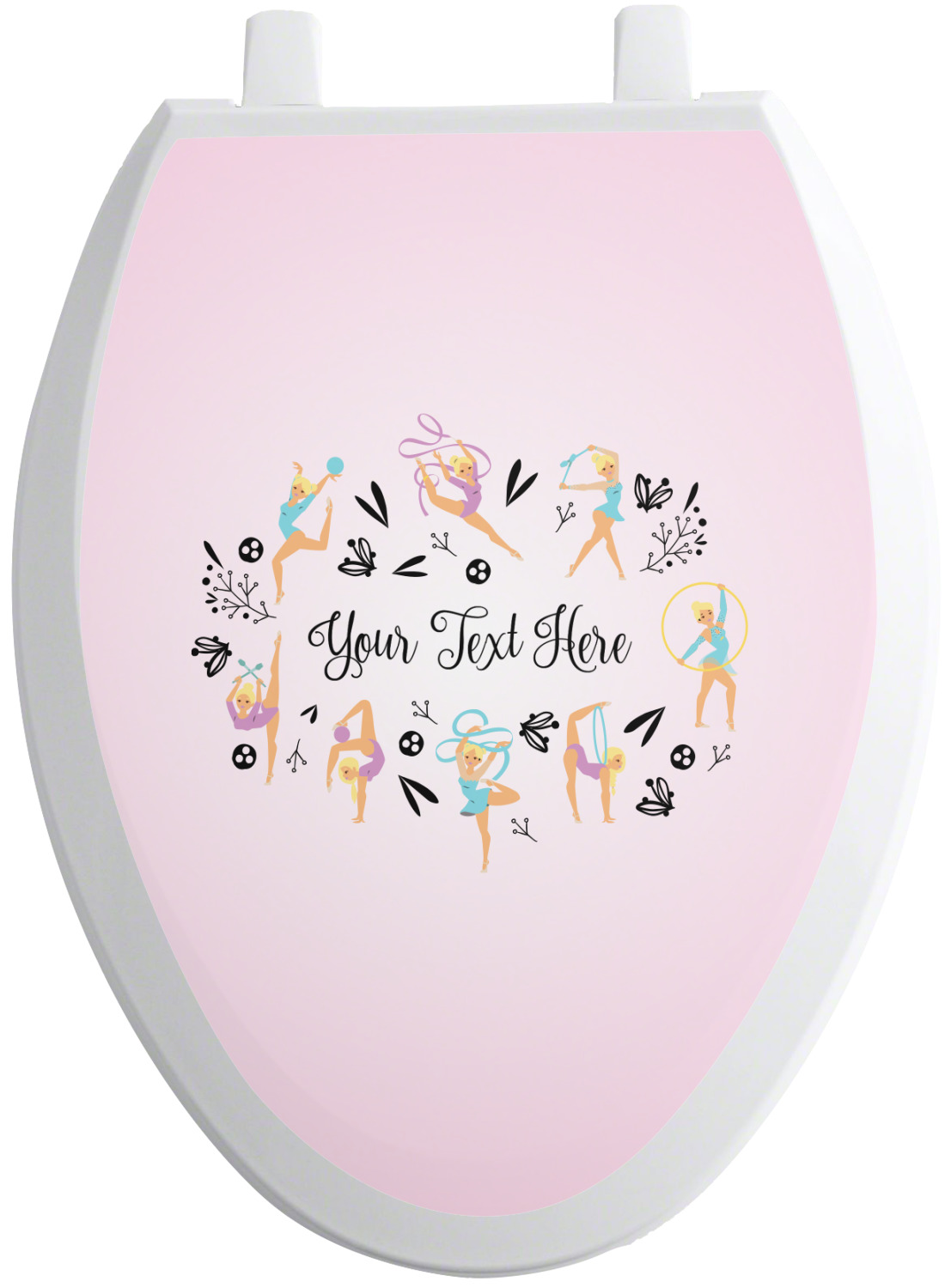 We sell these toilet lid decals in two different shapes to accommodate a wider range of toilet seat shapes. The first shape is our standard, round size, which measures at 13.5 by 12 inches. Our second option is an elongated shape, suited for long toilet seat covers. It measures 15 by 12 inches.