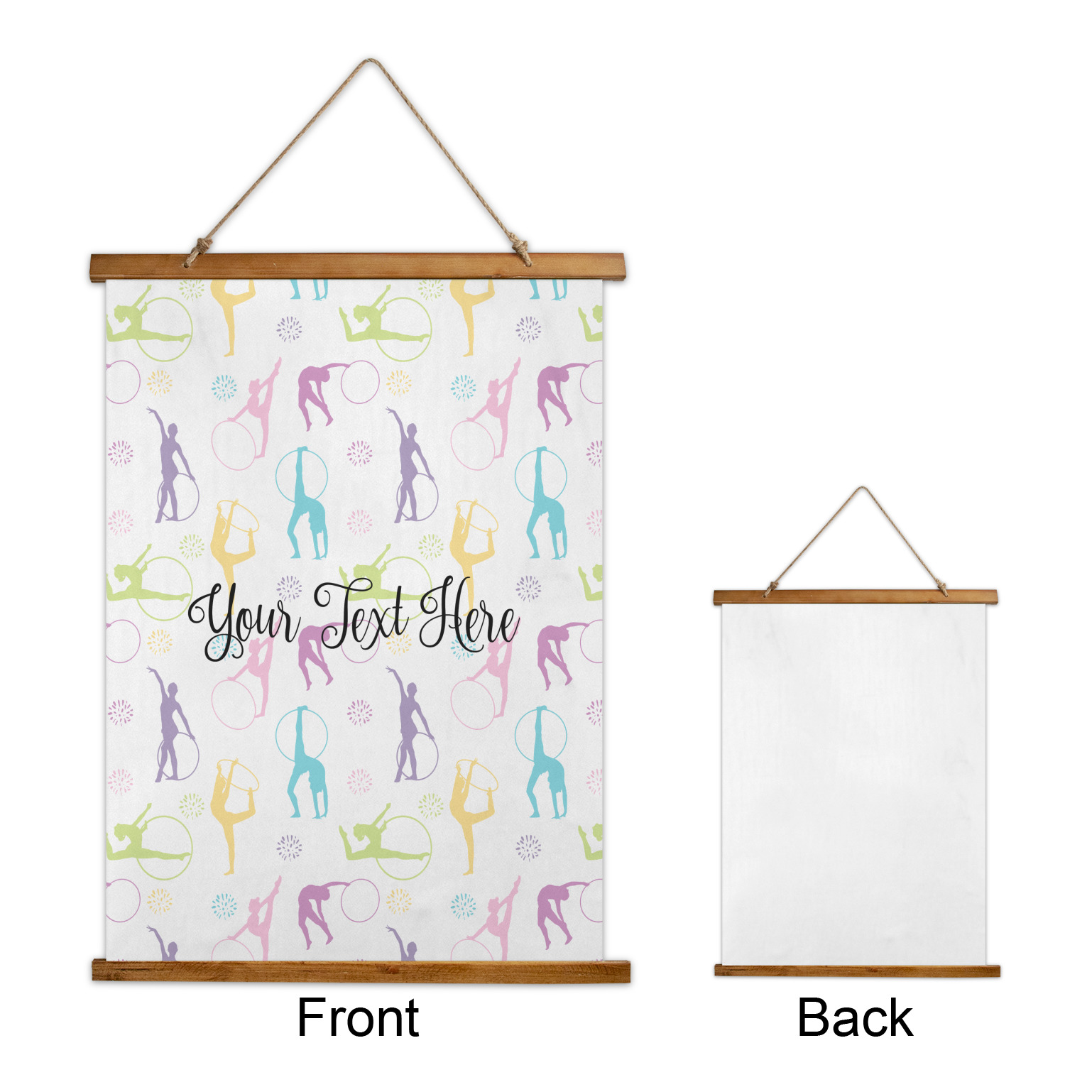 Made in two different orientations - portrait or landscape - both are 26" x 36". Your design is printed on a high quality polyester fabric with hemmed edges. The wood on the top and bottom of the tapestry is 1.25" tall and 0.25" thick and there are two pieces on top and bottom which sandwich the fabric.
