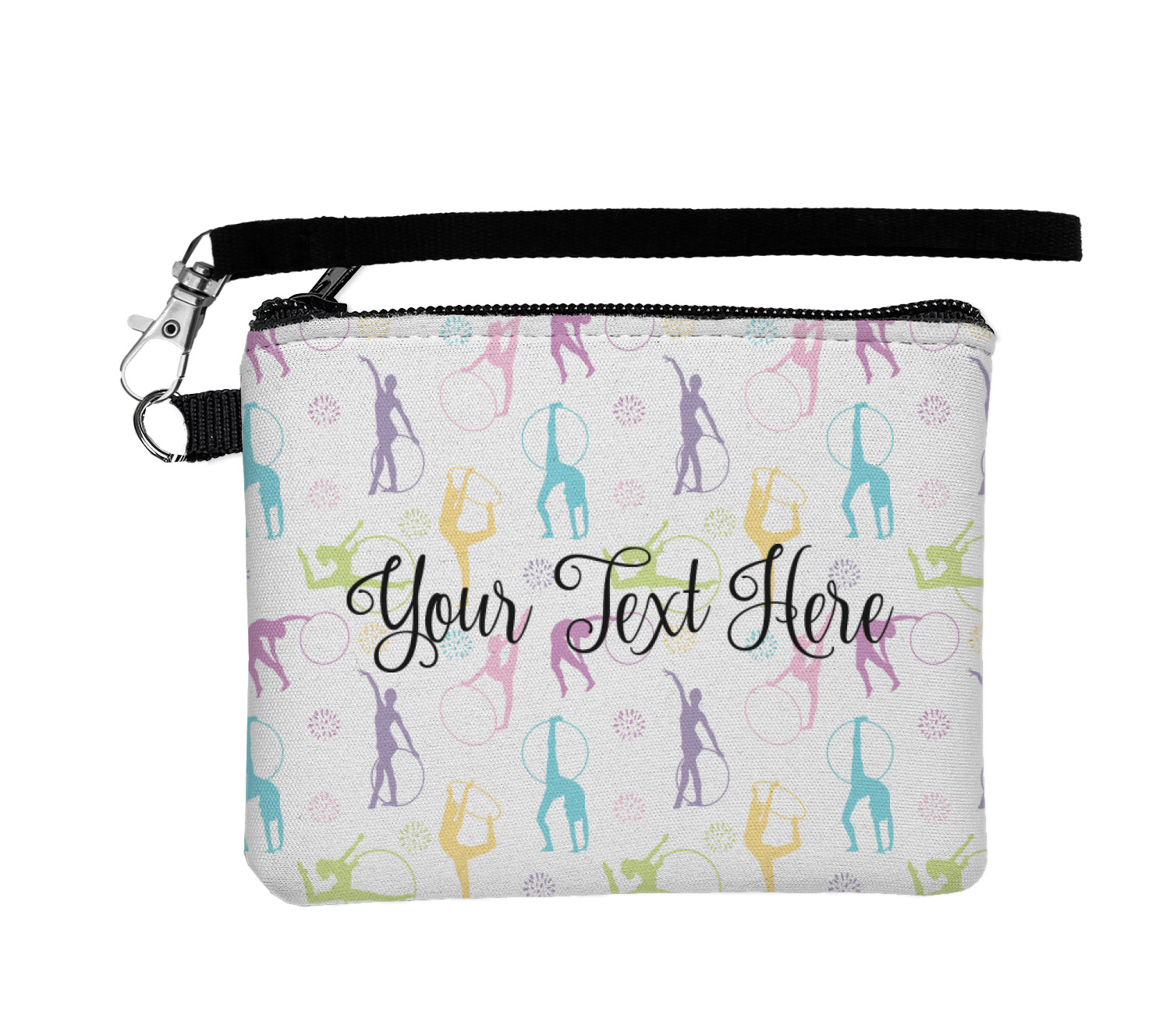 This design template is perfect for gymnasts, their friends and family. The main design features a pattern with gymnasts in pastel colors, some flowers and a white background. The optional personalization is name / text.