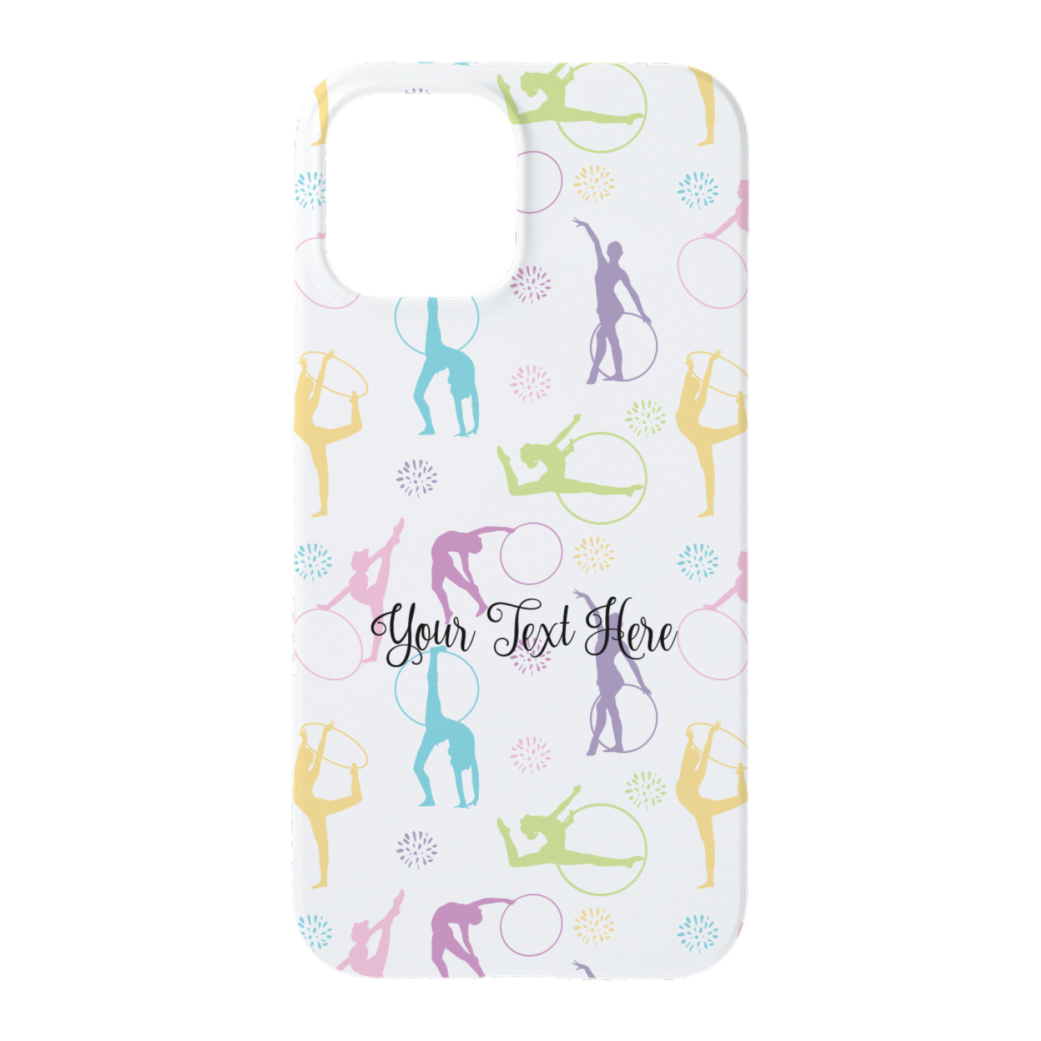 This design template is perfect for gymnasts, their friends and family. The main design features a pattern with gymnasts in pastel colors, some flowers and a white background. The optional personalization is name / text.