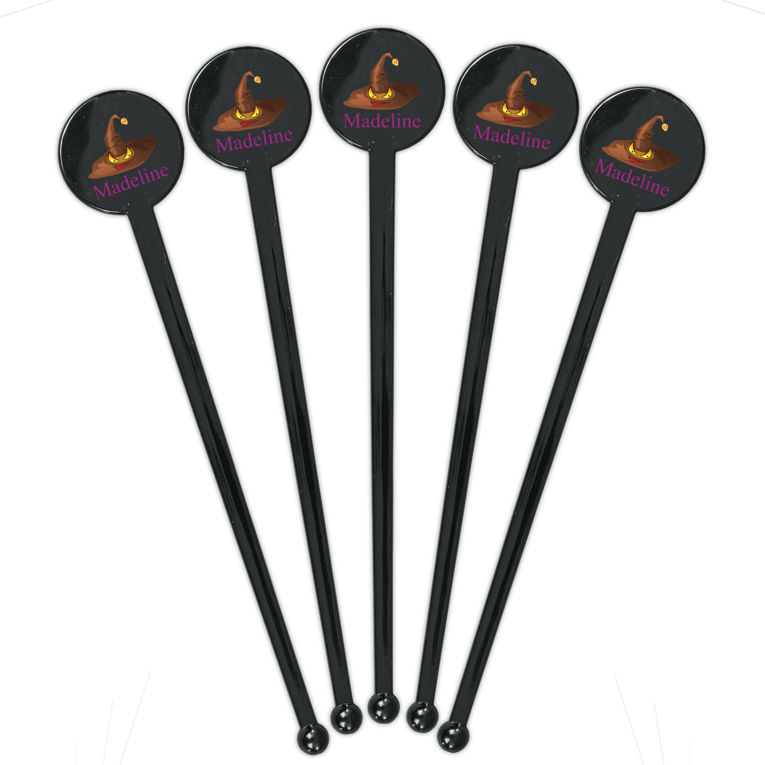 Trees Designs for 7" Round Plastic Stir Sticks - Black - Double-Sided
