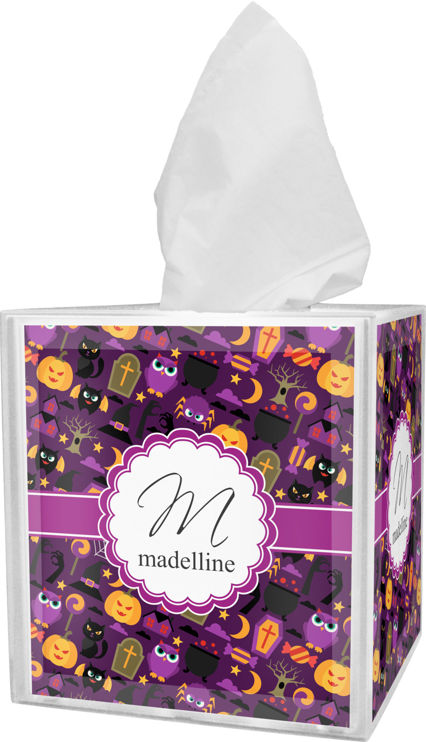 These tissue holders are built from durable acrylic and display your unique personalization on fine-quality vinyl inserts placed within the four sides and top. The box features two pieces, allowing you to easily switch out tissue boxes. On the sides, you'll find ridges that ensure the top and base fit securely in place. The bottom of these tissue box holders has four, rubber, non-slip pads to prevent the box from scuffing any surface you decide to display it on. Each box can fit a standard 5-by-5-inch box of tissues.