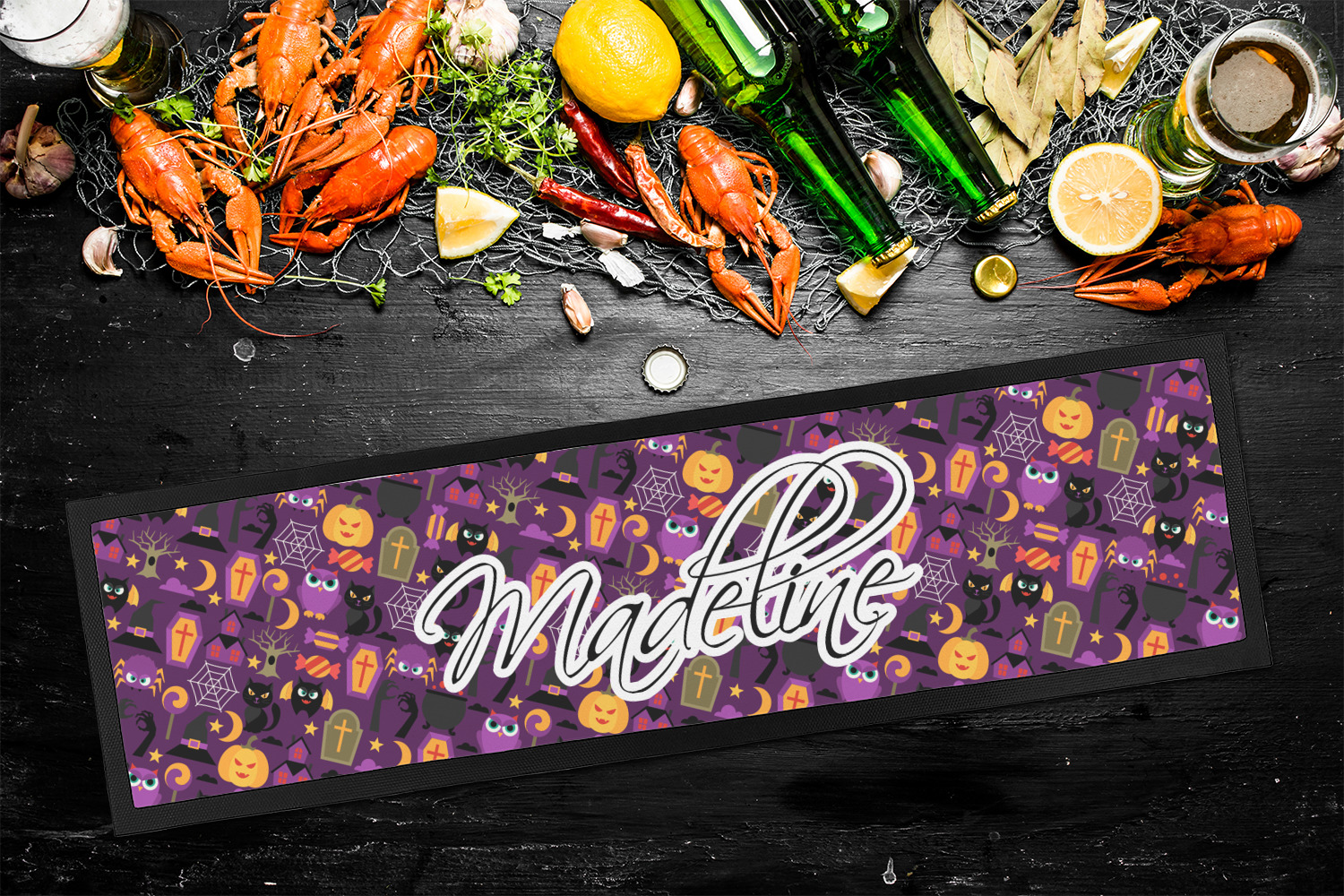 Halloween: a night filled with witch's hats, cauldrons overflowing with bubbly substances, jack-o'-lanterns, and of course, CANDY. This design brings together all your favorite things from October 31st on a deep violet background, the most mysterious color of all.