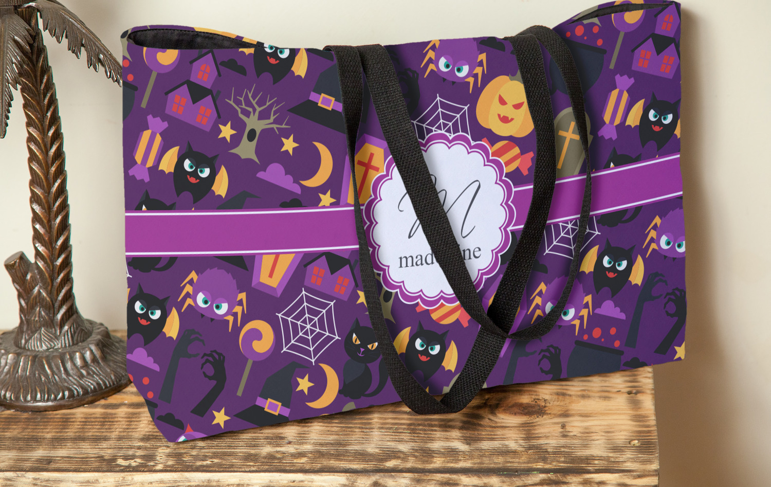 Halloween: a night filled with witch's hats, cauldrons overflowing with bubbly substances, jack-o'-lanterns, and of course, CANDY. This design brings together all your favorite things from October 31st on a deep violet background, the most mysterious color of all.