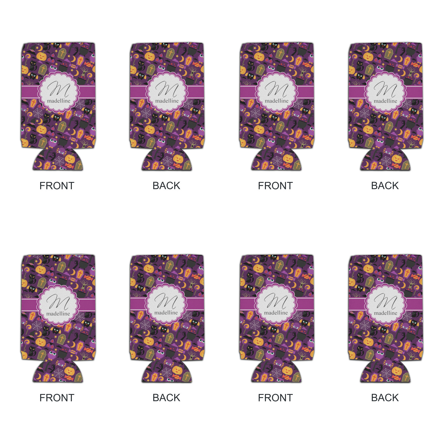 Halloween: a night filled with witch's hats, cauldrons overflowing with bubbly substances, jack-o'-lanterns, and of course, CANDY. This design brings together all your favorite things from October 31st on a deep violet background, the most mysterious color of all.