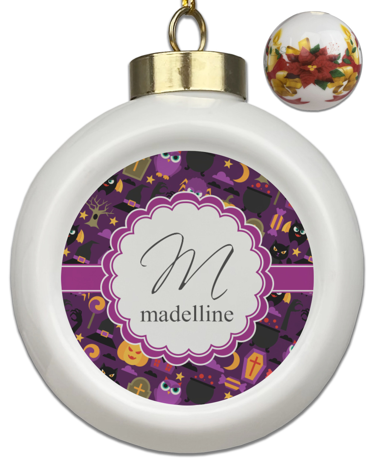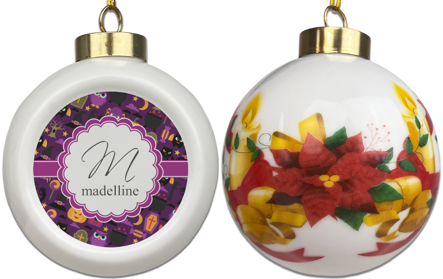 Our Christmas ornaments are a unique ceramic ball shape with a twist as it has a flat face to display your custom design! Select from one of our two design types - Christmas Tree or Poinsettia Garland - to adorn the curved back of your personal design. Each ornament measures 3H x 2.5W x 2D accompanied with a gold string accent for finishing touches to hang on your beautiful Christmas tree!