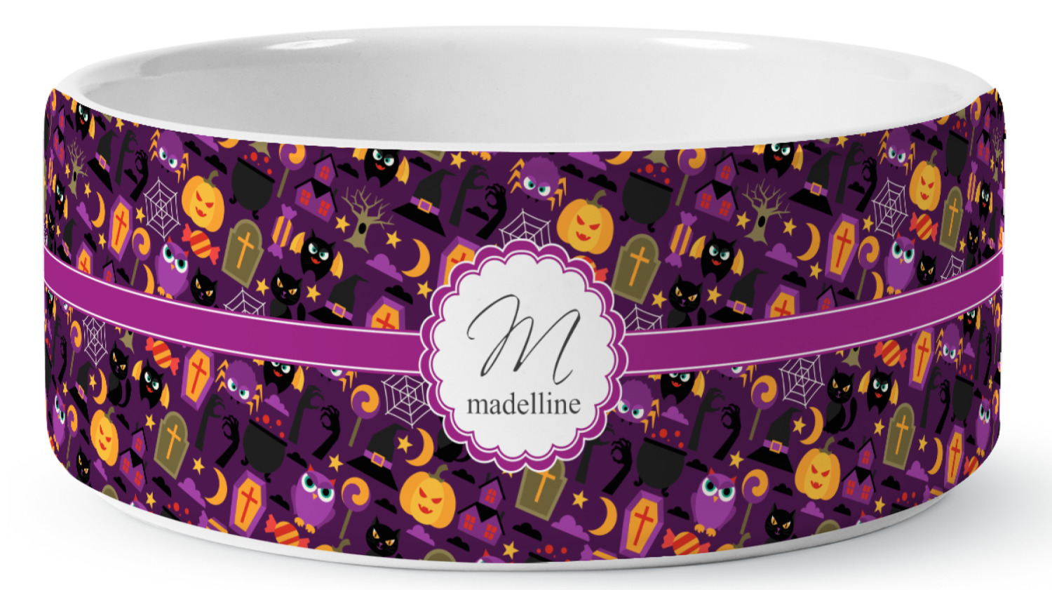 We carry these custom dog bowls in two available sizes: medium and large.The medium is 6 inches in diameter and 2.5 inches tall, and can therefore suit pets who eat up to 2.5 cups of food per meal. The large pet bowl is 7 inches in diameter and 3 inches tall, and suits pets who require up to 4.5 cups of food per meal.