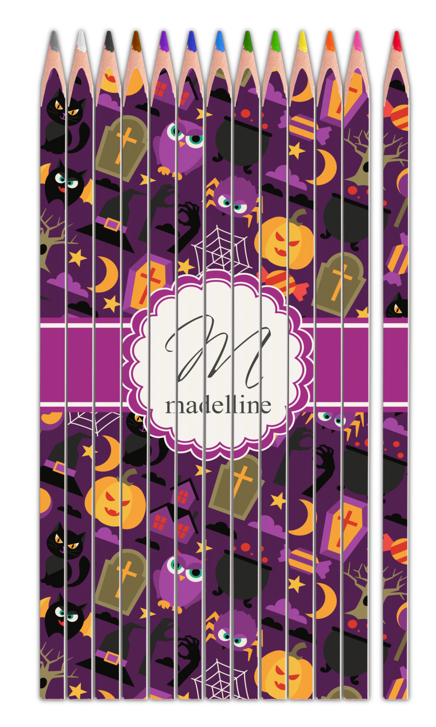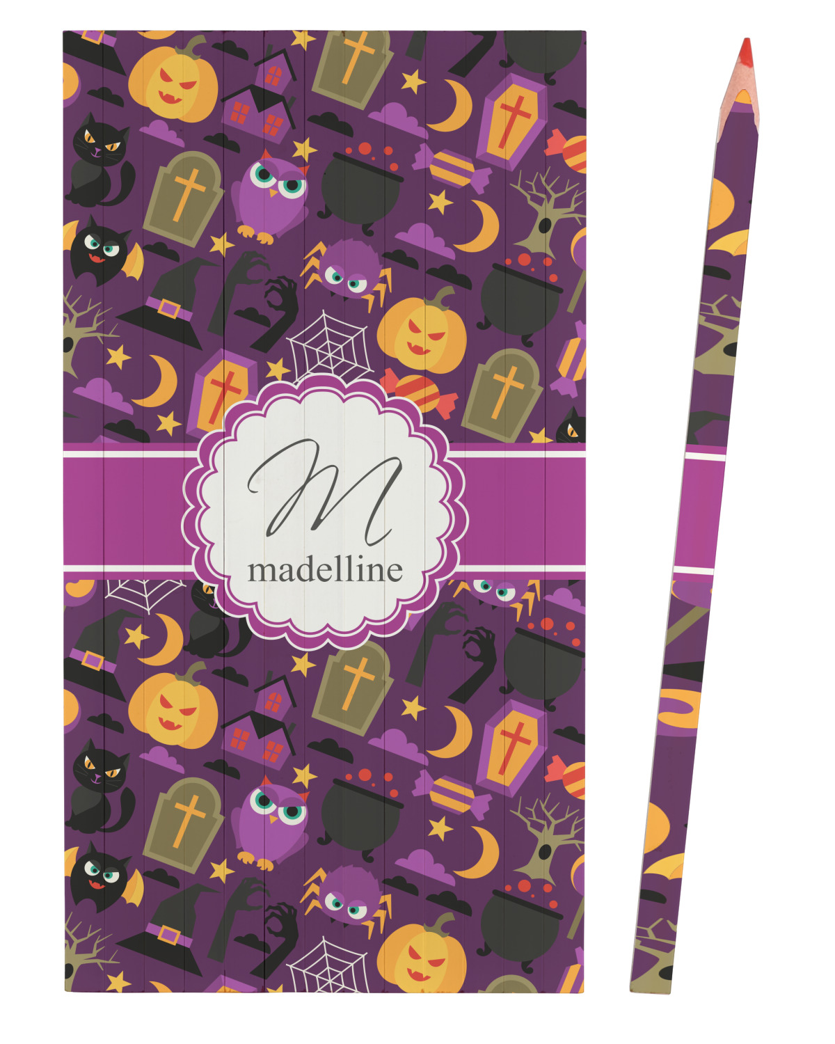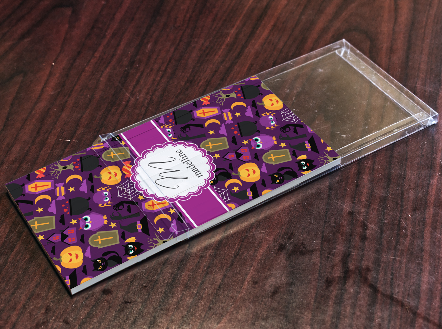 Halloween: a night filled with witch's hats, cauldrons overflowing with bubbly substances, jack-o'-lanterns, and of course, CANDY. This design brings together all your favorite things from October 31st on a deep violet background, the most mysterious color of all.