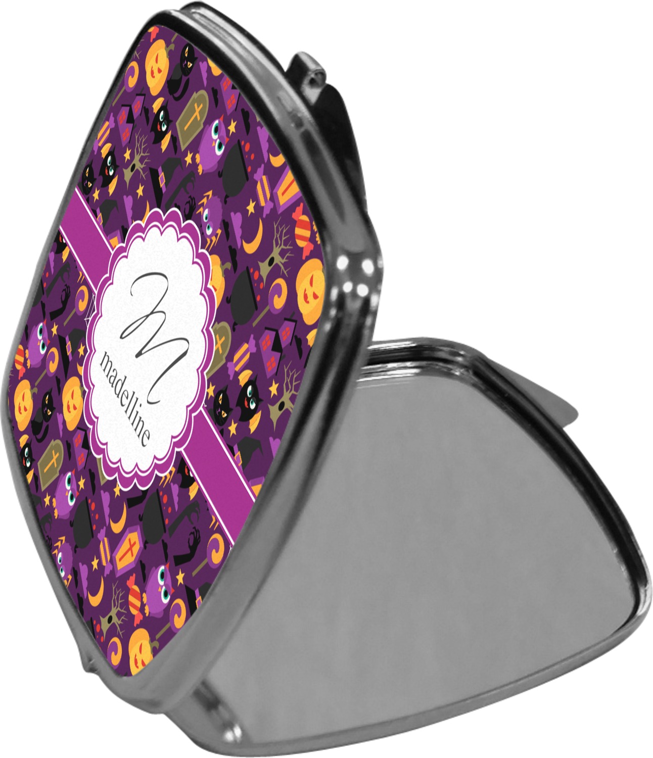 We offer many prints and patterns and many of our patterns are available in 45 different colors. You can personalized the compact mirrors with a name, a monogram or just an initial. We offer several different label, ribbon and font choices. Our customization system lets you create your very own custom & unique product and it lets you preview it before you purchase.