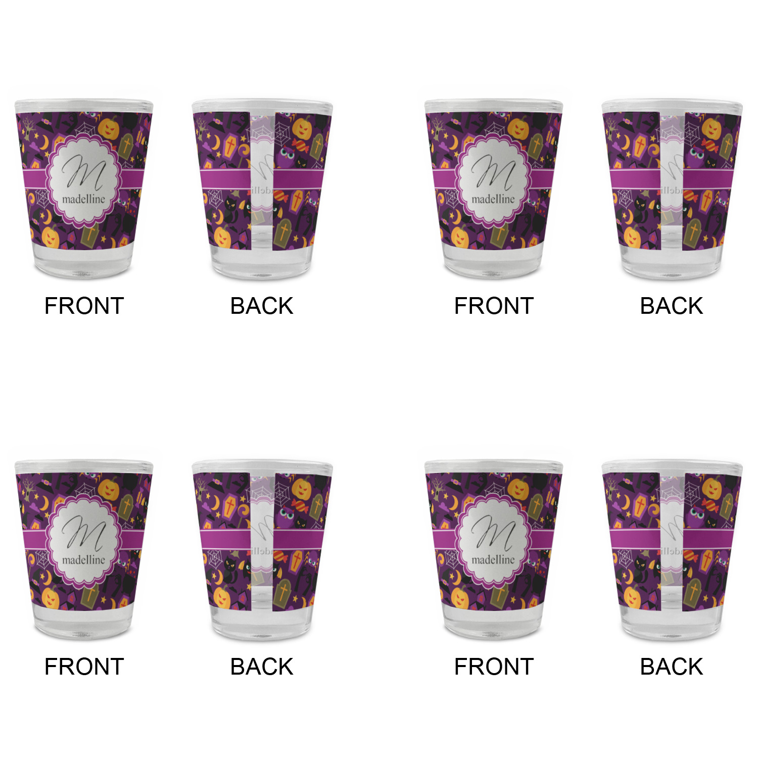 Made with frosted glass, these shot glasses are printed in full color with the design of your choice. They are a standard 1.5oz shot glass and are 2.4" tall. The print is wrapped around the shot glass in a full wrap and boldly displays your customization.