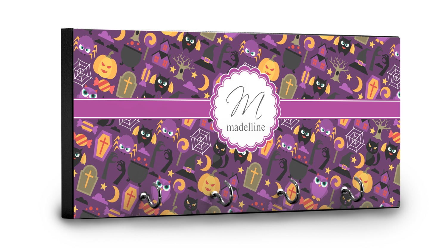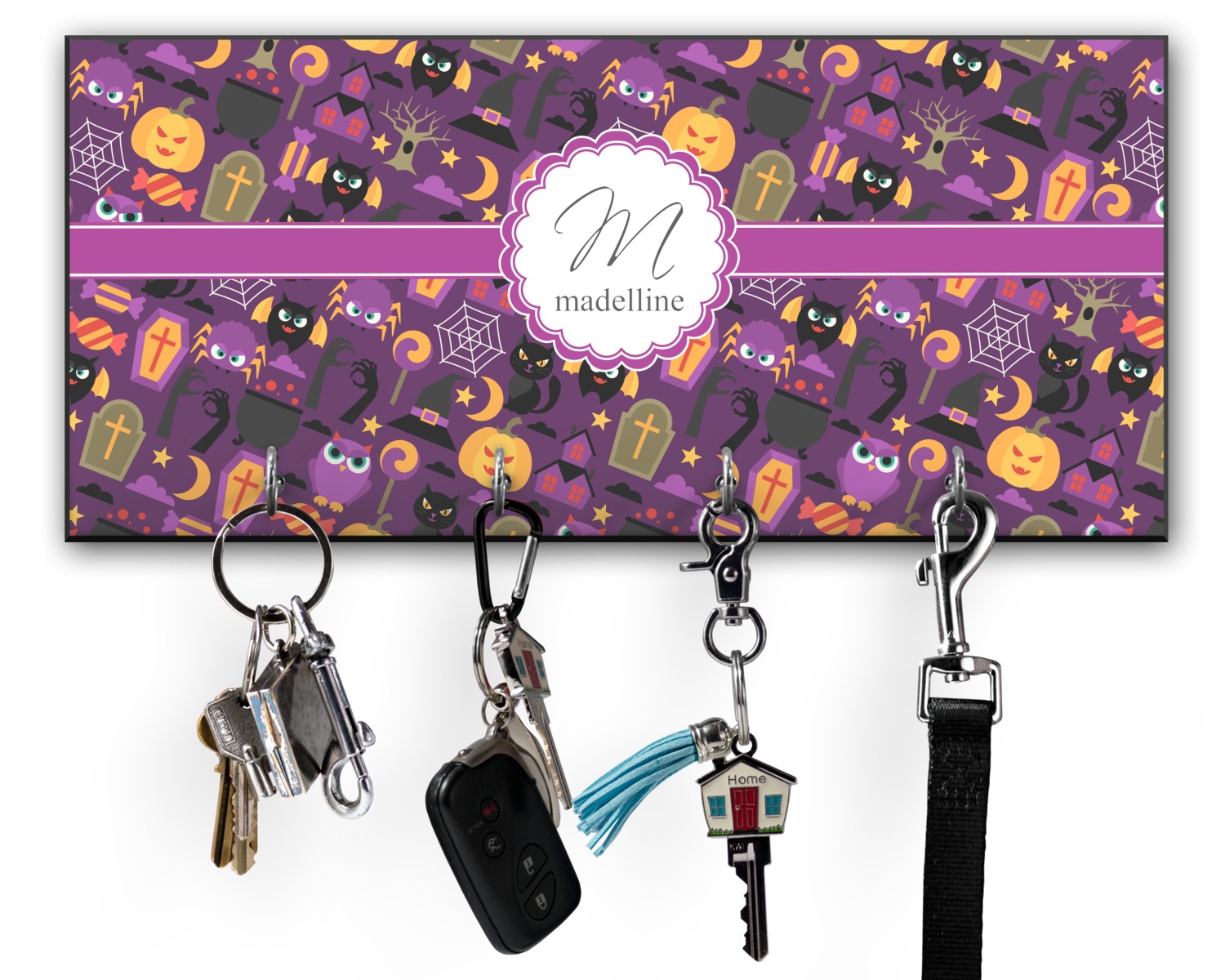 This 11" x 5" key hanger is made of sturdy wood and has four metal hooks lining the bottom. This is the perfect size for a family with several drivers. Not only can you hang keys on it though, but pet leashes and other small items. The board is black on the sides and back and is printed with the design of your choice on the front.