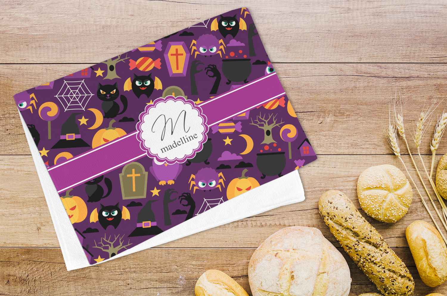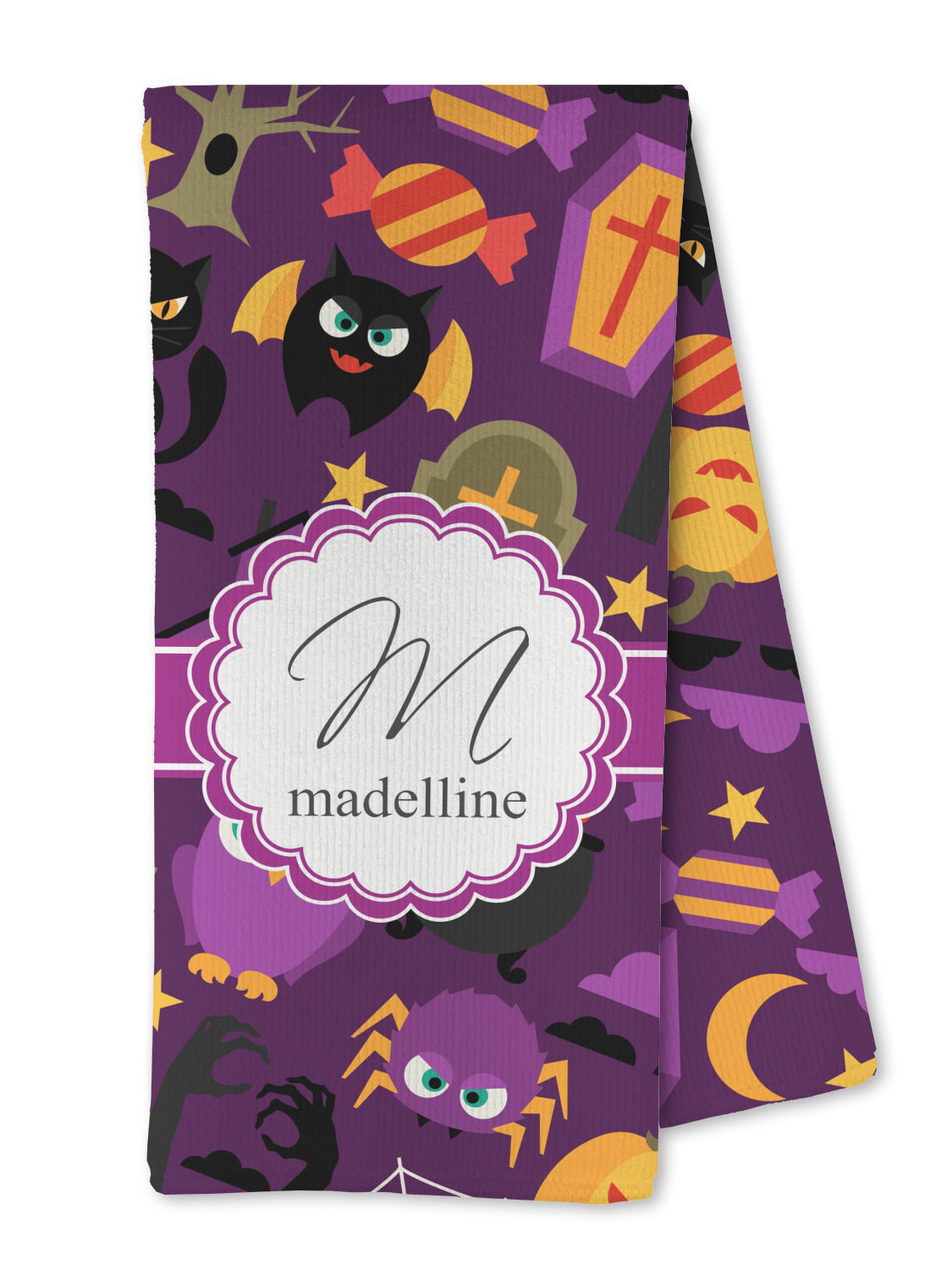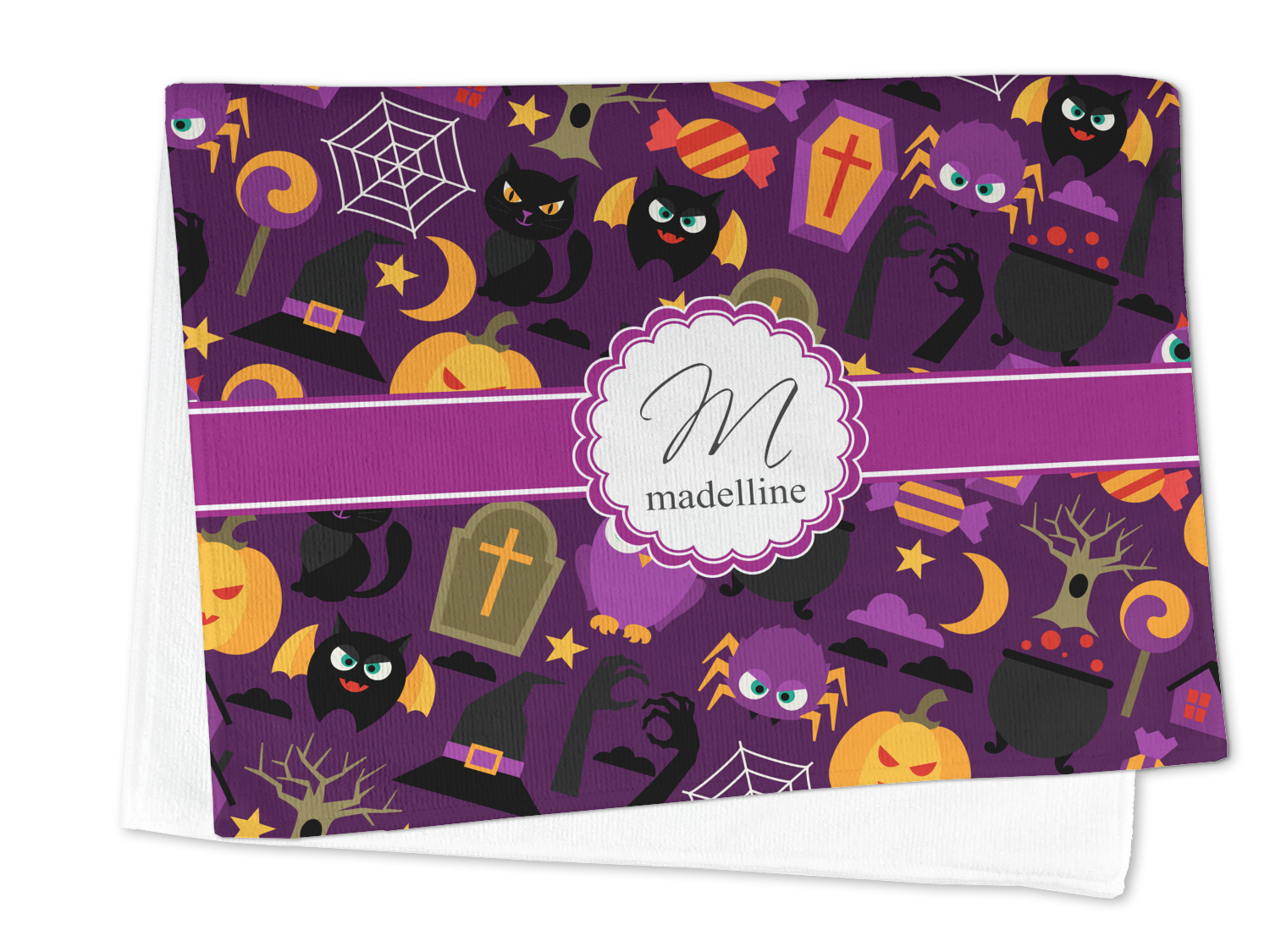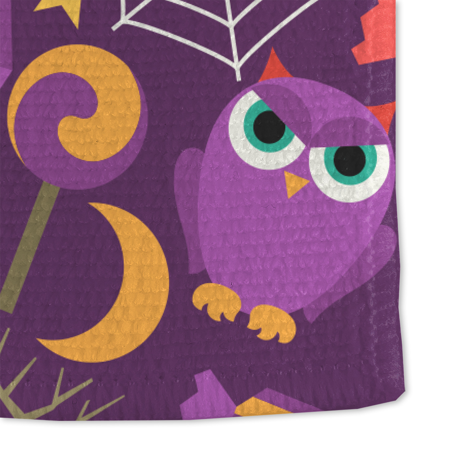 Halloween: a night filled with witch's hats, cauldrons overflowing with bubbly substances, jack-o'-lanterns, and of course, CANDY. This design brings together all your favorite things from October 31st on a deep violet background, the most mysterious color of all.