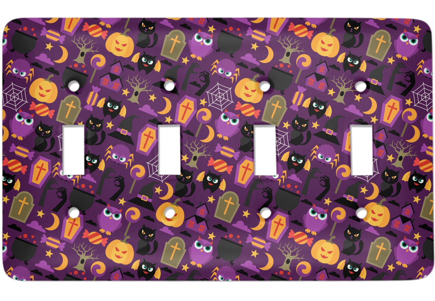 Halloween: a night filled with witch's hats, cauldrons overflowing with bubbly substances, jack-o'-lanterns, and of course, CANDY. This design brings together all your favorite things from October 31st on a deep violet background, the most mysterious color of all.