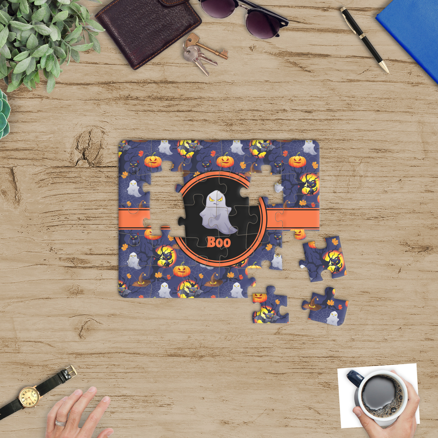 Depending on the look you are trying to achieve, you can add; a thematic pattern or background, with a photo in a frame and text or personalization to your puzzle. Basically if you can imagine it, you can design it!