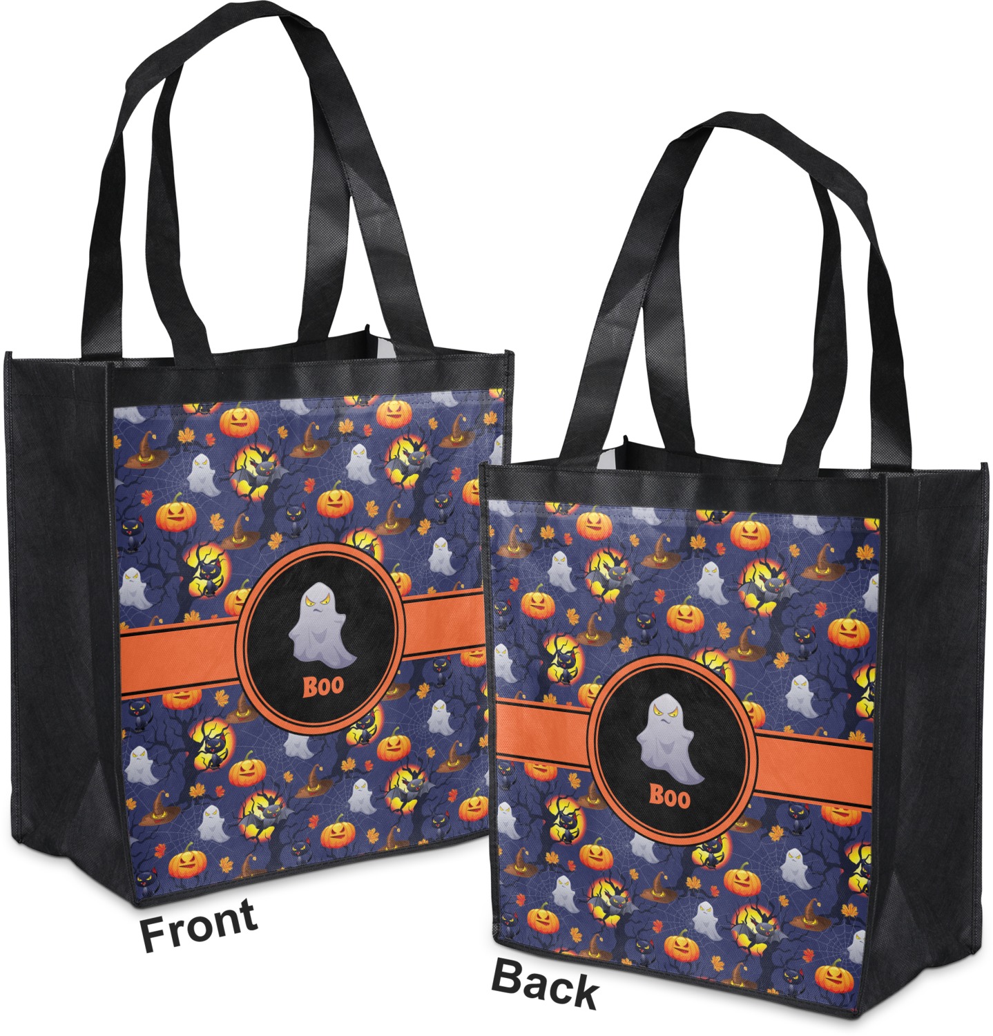 Made from a durable, biodegradable material, these reusable shopping bags can support up to 30 pounds of weight. With two large handles, measuring at 8.5 inches each, these personalized tote bags are easy to carry to your vehicle or home. The bag itself is 12 by 13.5 inches, and can expand to a depth of 7 inches. Your customization is printed on both the front and back, while the remaining sides, trim, and handle are a sleek, charcoal black.
