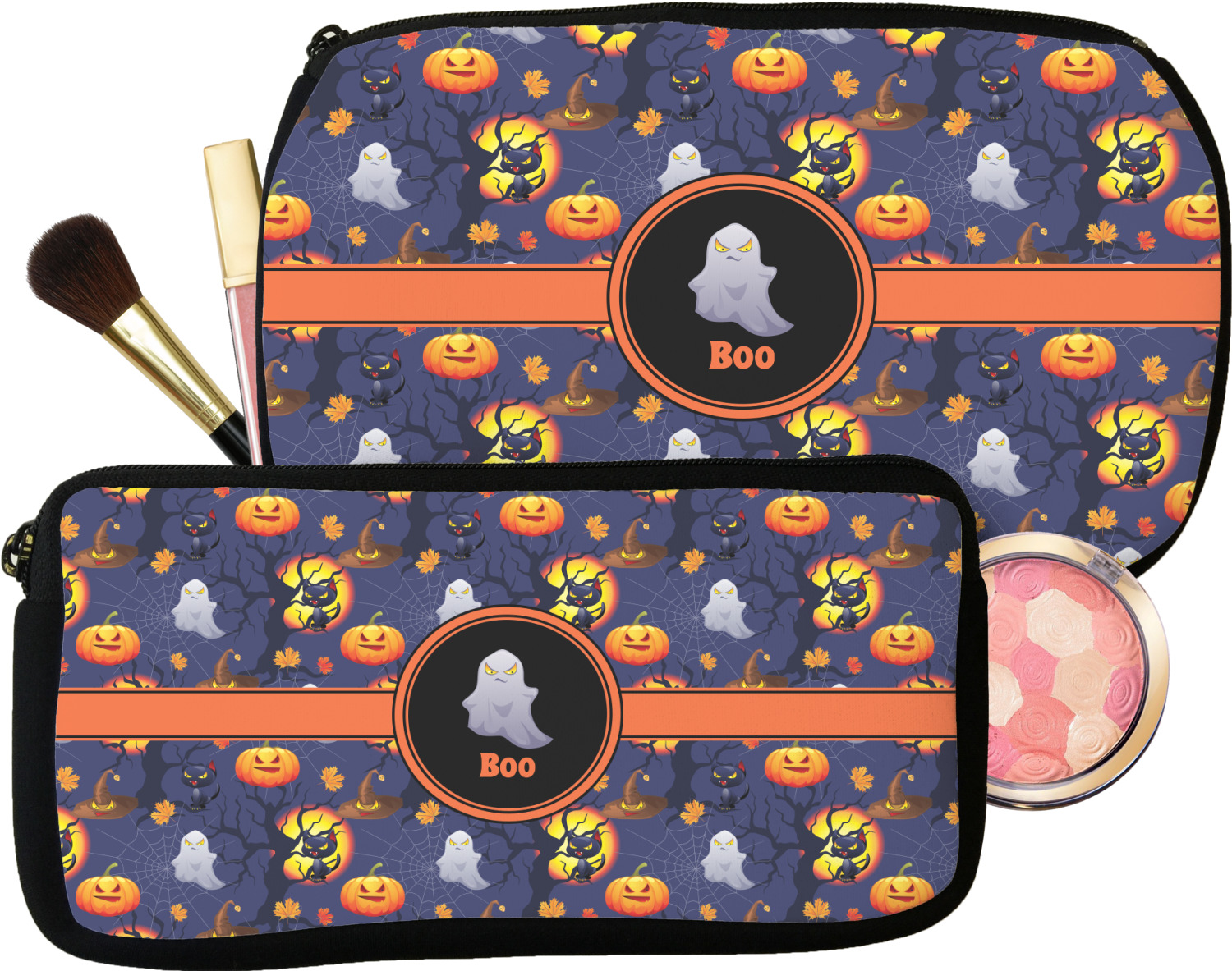 Our personalized makeup bags are available in many different designs, patterns and colors - so you are sure to find one that will love. They are made of neoprene (same material as wet-suits) and thus are water resistant, so spillages in your makeup bag will not end up all over you purse. They are customized on one side and are black on the other side and the zipper is black as well.