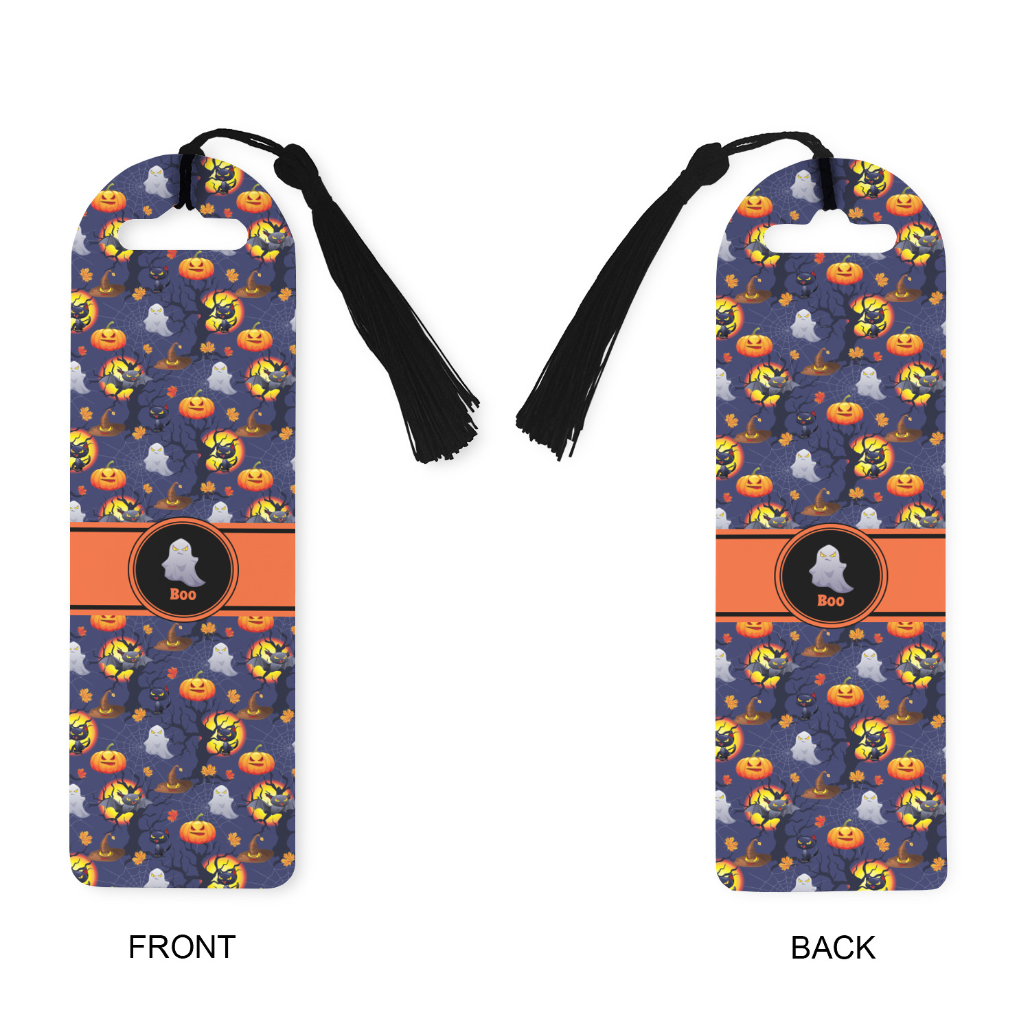 Made from a durable, flexible plastic, these bookmarks are printed with your custom design on them. With the tassel on them they make it easy to find your page in your book. These are a rectangular shape 7 1/4 inches tall with a rounded top and are approximately 2 1/4 inches wide.