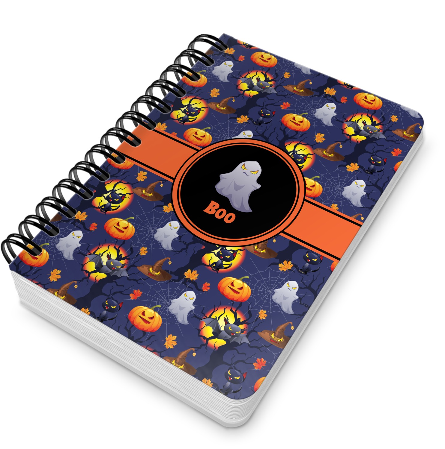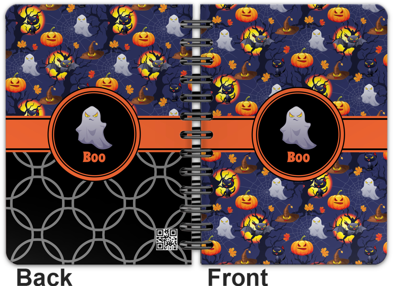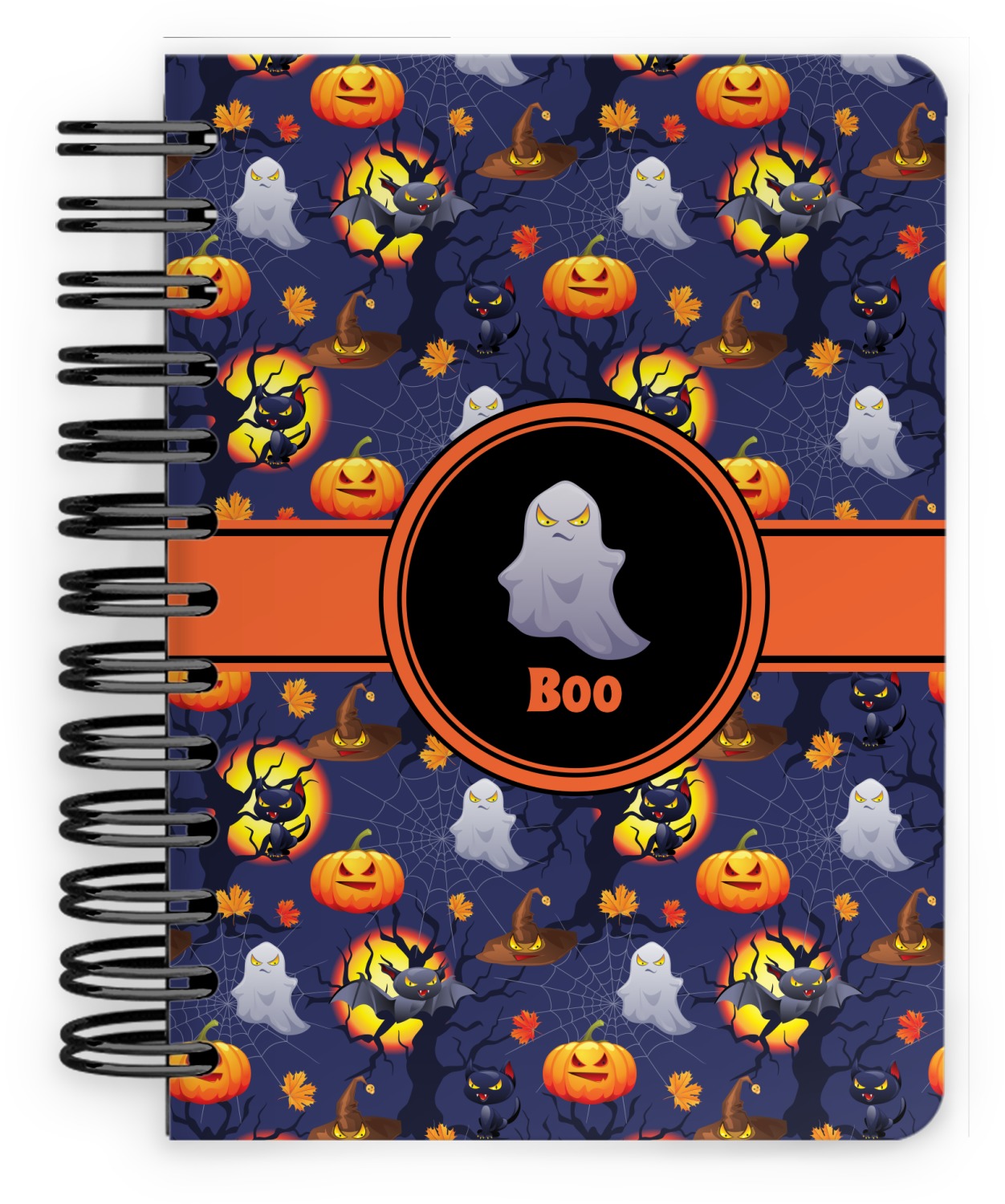 This spiral notebook includes 75 sheets of thick, ruled paper. The front and back of this custom notebook is made of a robust, laminate, plastic covering. We print your personalization on these two panels, underneath a glossy finish, which emphasizes the colors of your design. The two panels and the sheets of paper are held together by a sturdy, black coil. The paper within your bound notebook is perforated for easy, clean tearing.