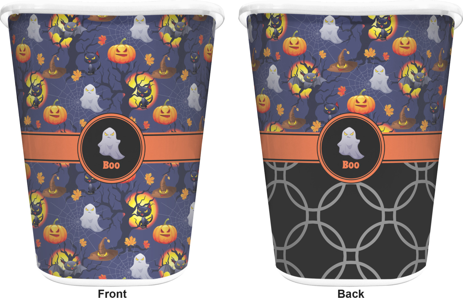 You can choose to purchase these decorative wastebaskets in either a white or a black color that will show on the base and the upper rim. Your customization is printed on a high-gloss, fine-quality vinyl adhesive, and you can choose to either have this adhesive applied to one side only or to both sides. As such, this plastic wastebasket can be single-sided or double-sided, depending on your creative vision. Your customization is printed using durable inks, making the design waterproof and resistant to fading over time.