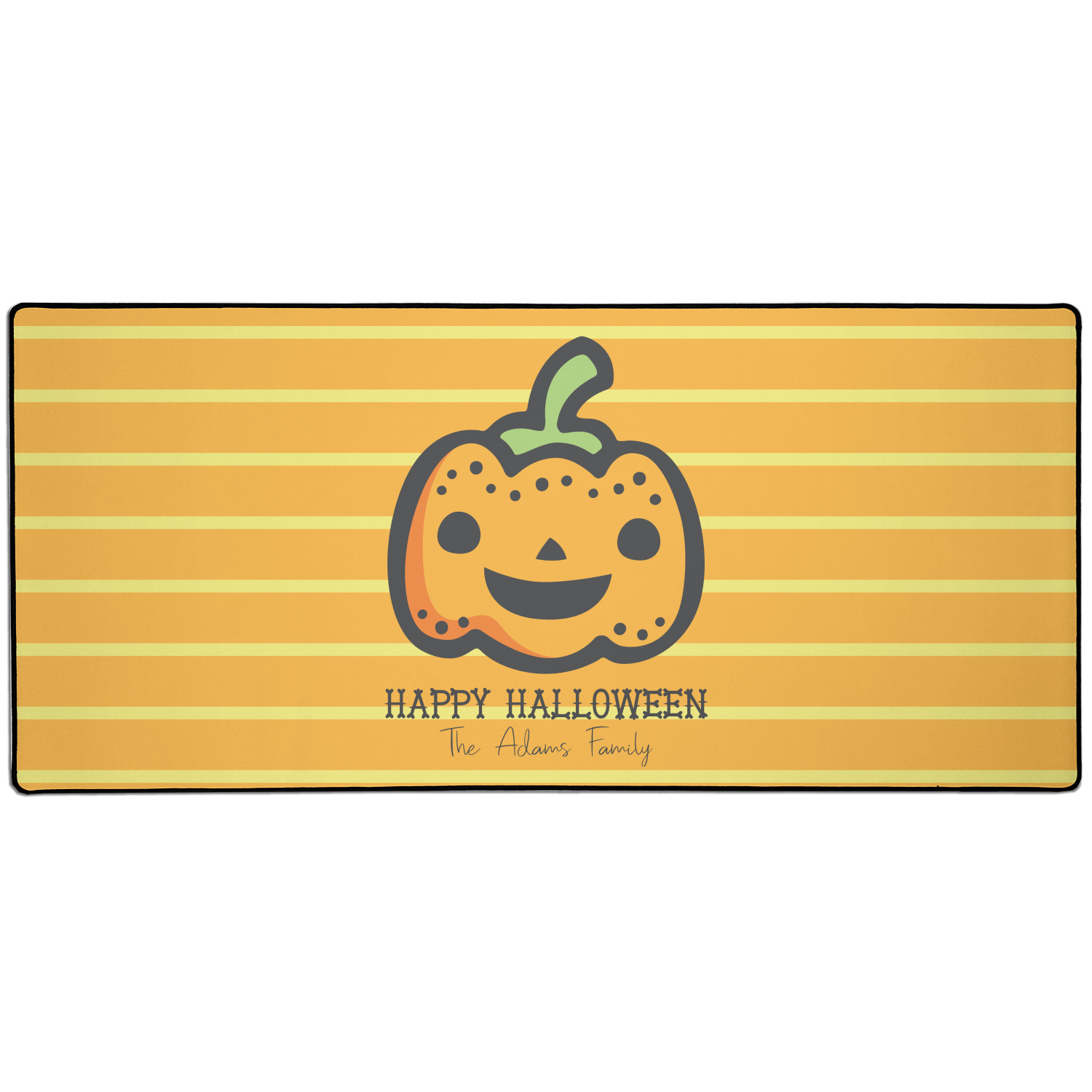 The design features a fun-loving pumpkin as the main focus. He even has a cute little smile on his face that will make you smile right back. The background is a subtle striped one with yellow and orange as the colors. Your personalization or greeting goes directly underneath your pumpkin friend. The coordinating design even has a cute little ghost who thinks that you are "bootiful" and "spooktacular."