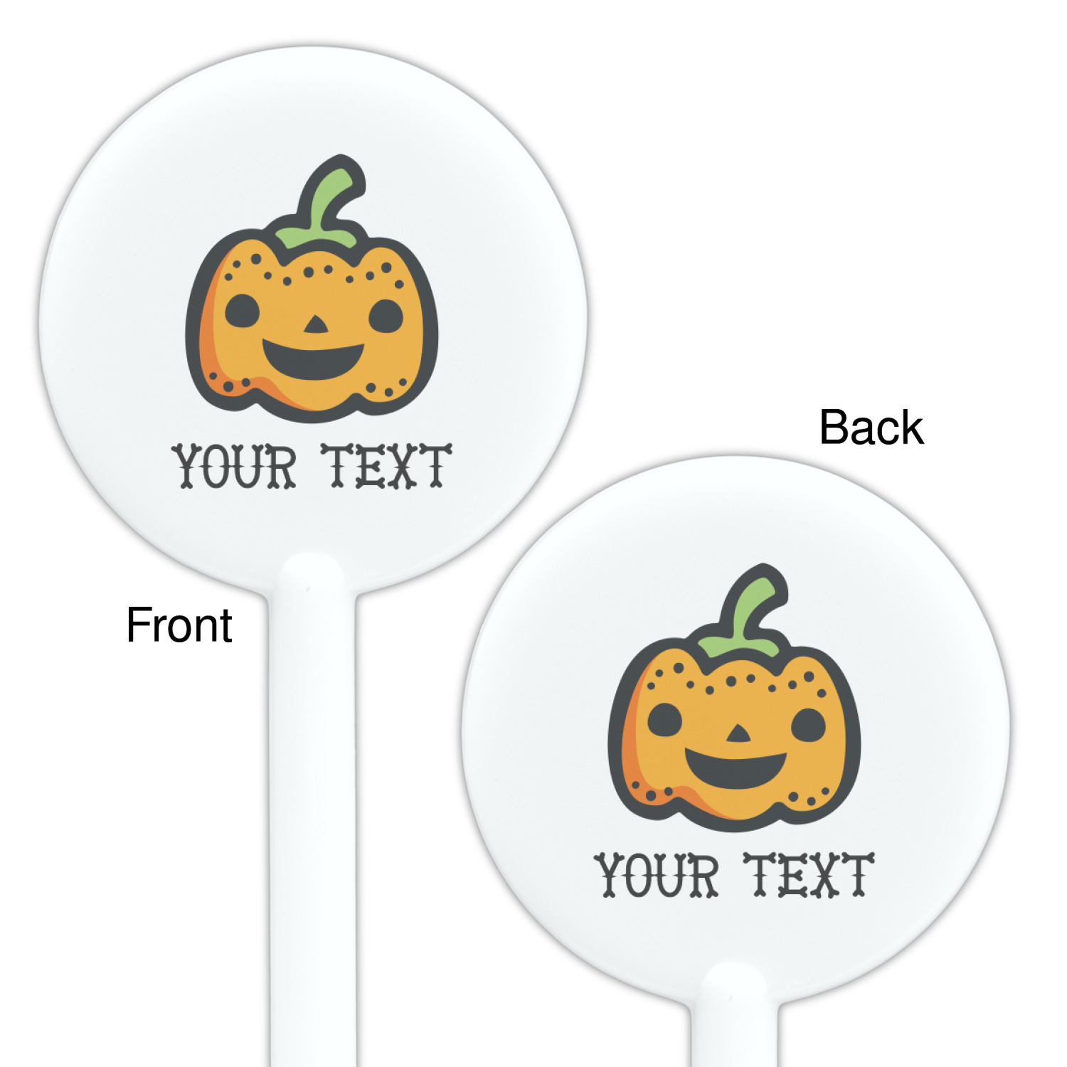 The design features a fun-loving pumpkin as the main focus. He even has a cute little smile on his face that will make you smile right back. The background is a subtle striped one with yellow and orange as the colors. Your personalization or greeting goes directly underneath your pumpkin friend. The coordinating design even has a cute little ghost who thinks that you are "bootiful" and "spooktacular."