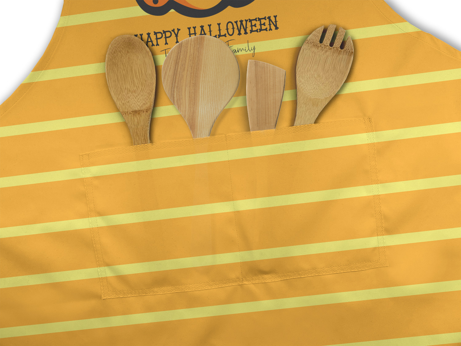 Our aprons are a lightweight yet durable polyester material. We offer two styles of aprons, one without pockets and one with two pockets adorning the center near the waistline. Each apron is one size* and comes with adjustable straps for both the neckline and waist. We print your custom design on the front of the apron to display your creativity!
