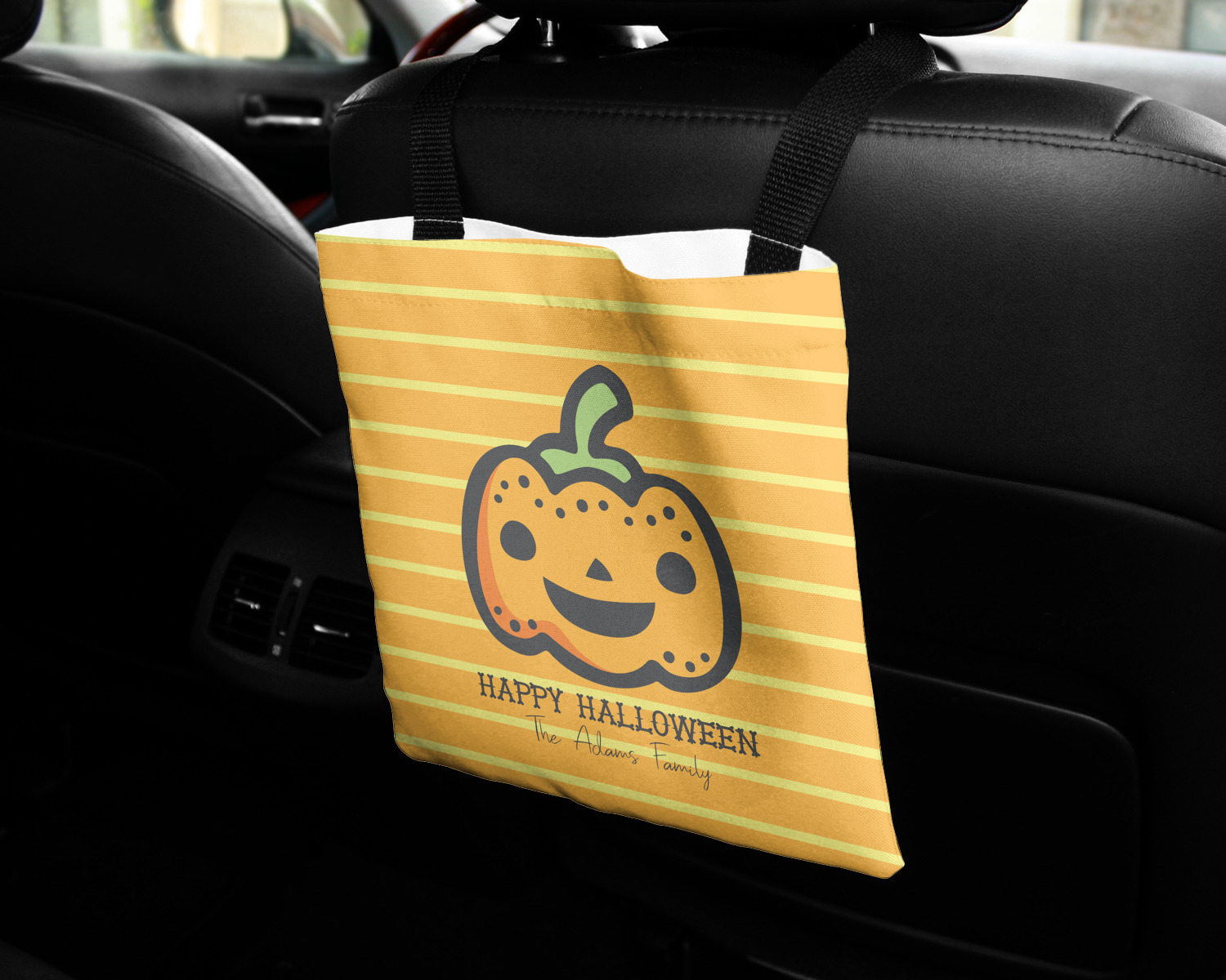 These car back seat organizers are sturdy tote-like bags, fabricated from a robust polyester, and features a single handle on the back side. The strap features an attachable velcro for easy attachment to headrests, grocery carts, car seats, and more. Simply undo the velcro, loop the strap around the headrest, reattach the velcro, and let the organizer hang from the front seat. These car organizers are the perfect means of increasing your backseat's legroom, while storing multiple items in one place for better accessibility. Each car back seat organizer measures at 10 by 10 inches, and features your personalized design printed across its front and back.