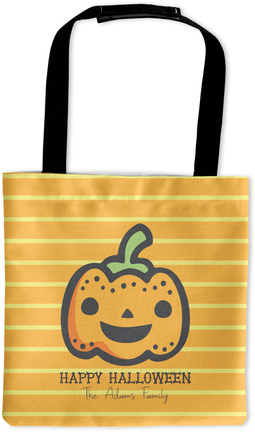 The design features a fun-loving pumpkin as the main focus. He even has a cute little smile on his face that will make you smile right back. The background is a subtle striped one with yellow and orange as the colors. Your personalization or greeting goes directly underneath your pumpkin friend. The coordinating design even has a cute little ghost who thinks that you are "bootiful" and "spooktacular."