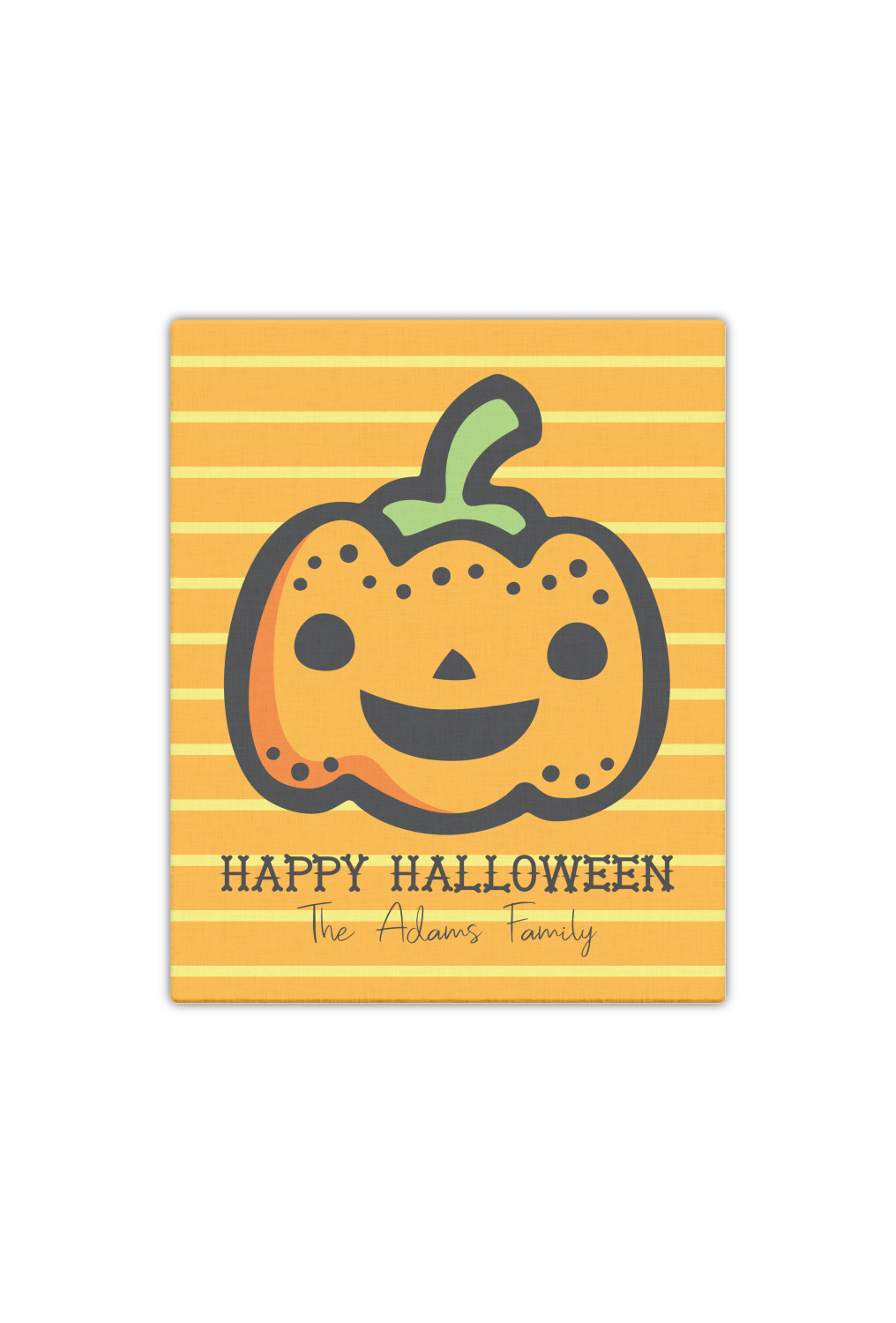 The design features a fun-loving pumpkin as the main focus. He even has a cute little smile on his face that will make you smile right back. The background is a subtle striped one with yellow and orange as the colors. Your personalization or greeting goes directly underneath your pumpkin friend. The coordinating design even has a cute little ghost who thinks that you are "bootiful" and "spooktacular."