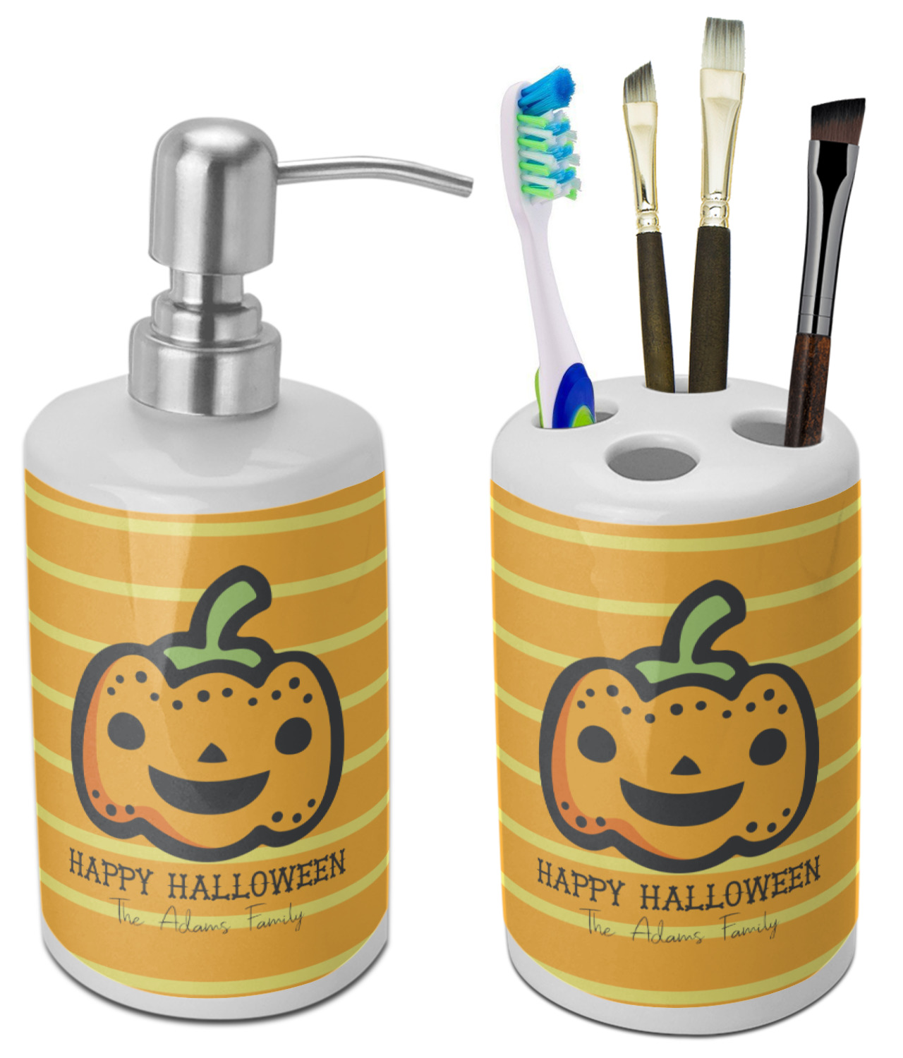 This two piece, ceramic bathroom set will add the perfect splash of color to any bathroom. This set includes one pump dispenser, ideal for soap or lotion, and one toothbrush holder with four holes. Although originally designed for toothbrushes, the holder will also hold make-up brushes, nail files, and other bathroom tools.