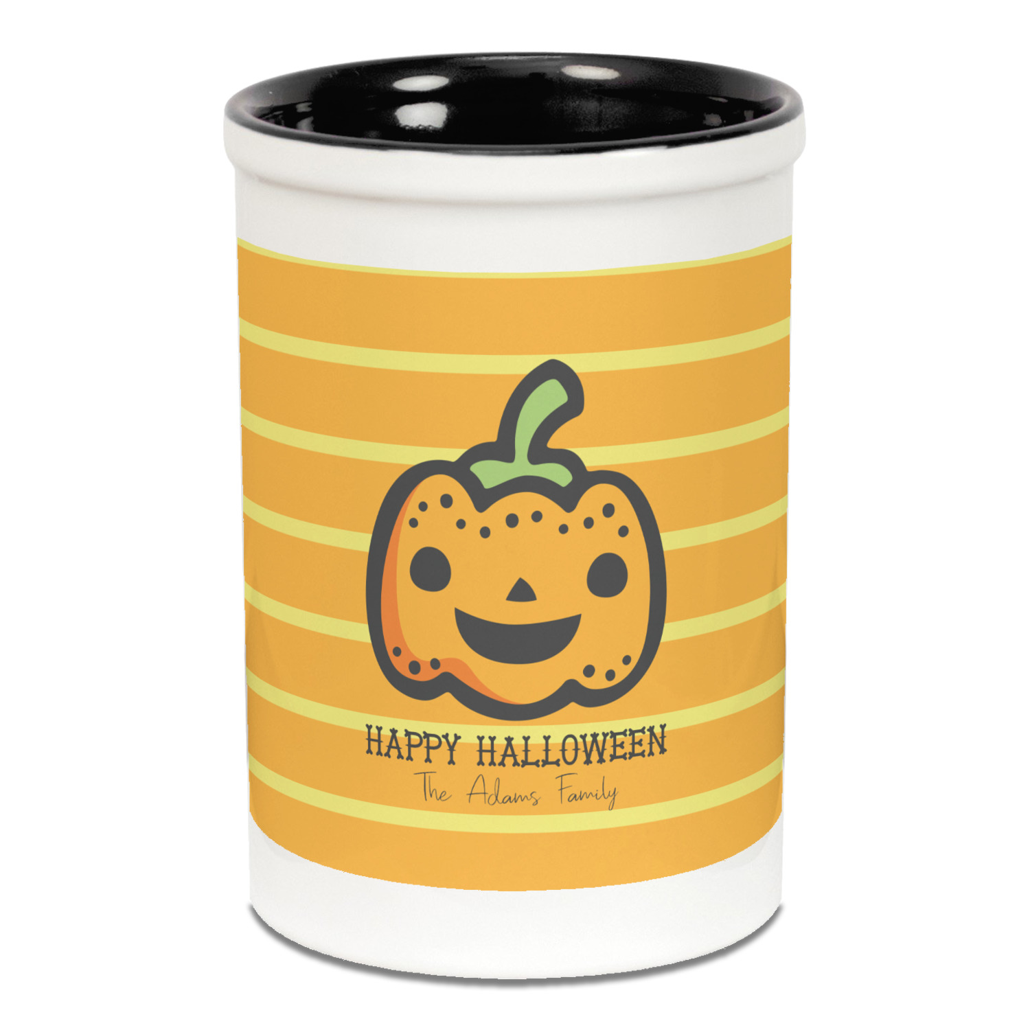 The design features a fun-loving pumpkin as the main focus. He even has a cute little smile on his face that will make you smile right back. The background is a subtle striped one with yellow and orange as the colors. Your personalization or greeting goes directly underneath your pumpkin friend. The coordinating design even has a cute little ghost who thinks that you are "bootiful" and "spooktacular."