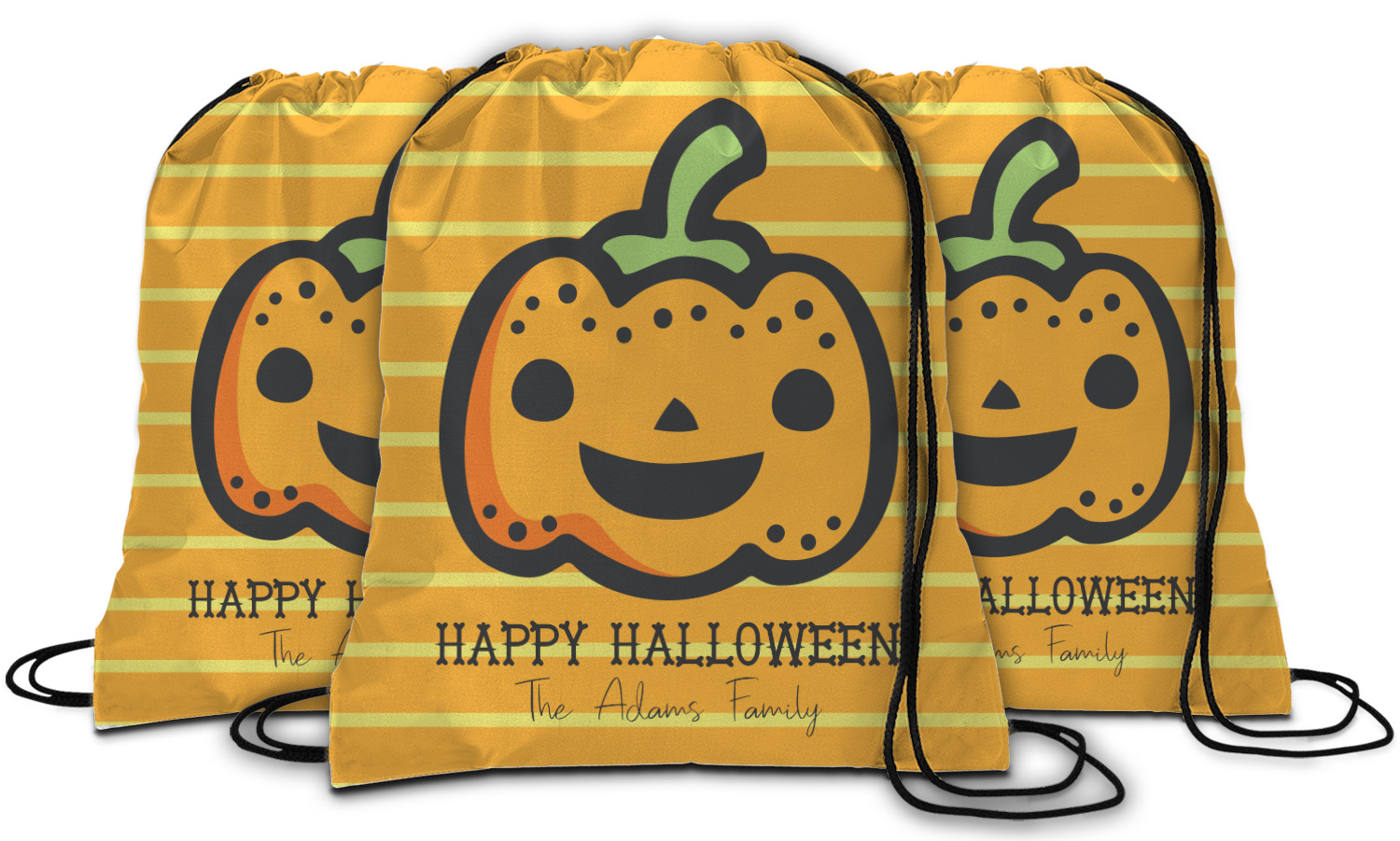 The design features a fun-loving pumpkin as the main focus. He even has a cute little smile on his face that will make you smile right back. The background is a subtle striped one with yellow and orange as the colors. Your personalization or greeting goes directly underneath your pumpkin friend. The coordinating design even has a cute little ghost who thinks that you are "bootiful" and "spooktacular."