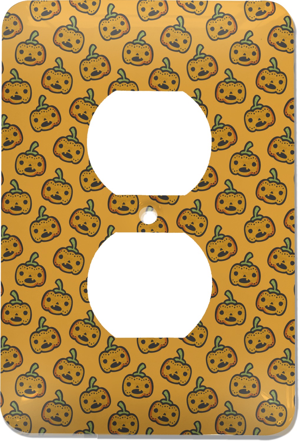 These outlet covers are made from a sturdy metal and display your design across its face. A satin finish coats the design to give it a finished look. The center of this outlet plate cover has a small hole to accommodate a screw upon installation. With your purchase of this decorative outlet cover, we include one screw. This outlet plate is of a standard size, and measures at approximately 3.5 by 5 inches.