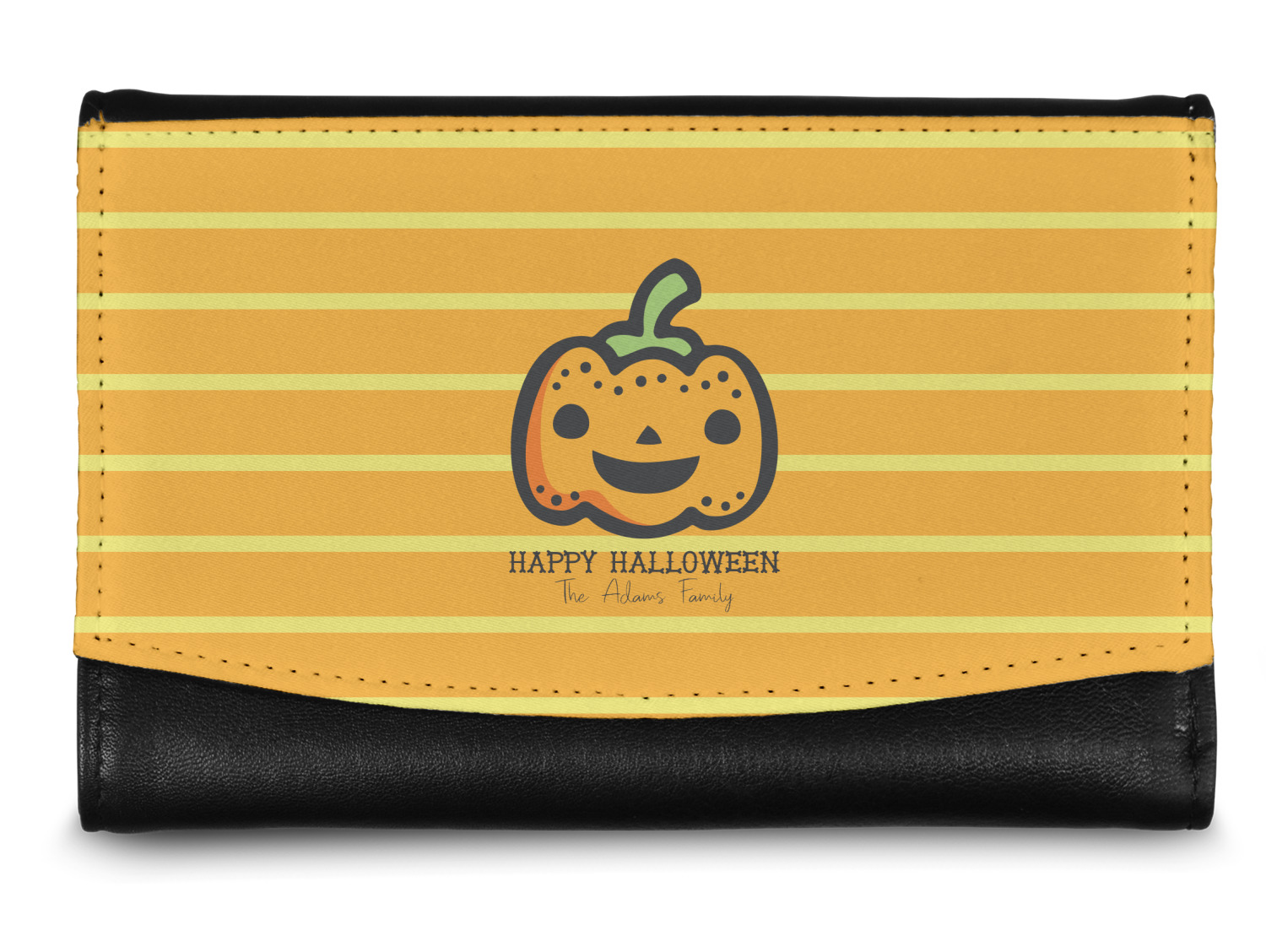 The design features a fun-loving pumpkin as the main focus. He even has a cute little smile on his face that will make you smile right back. The background is a subtle striped one with yellow and orange as the colors. Your personalization or greeting goes directly underneath your pumpkin friend. The coordinating design even has a cute little ghost who thinks that you are "bootiful" and "spooktacular."