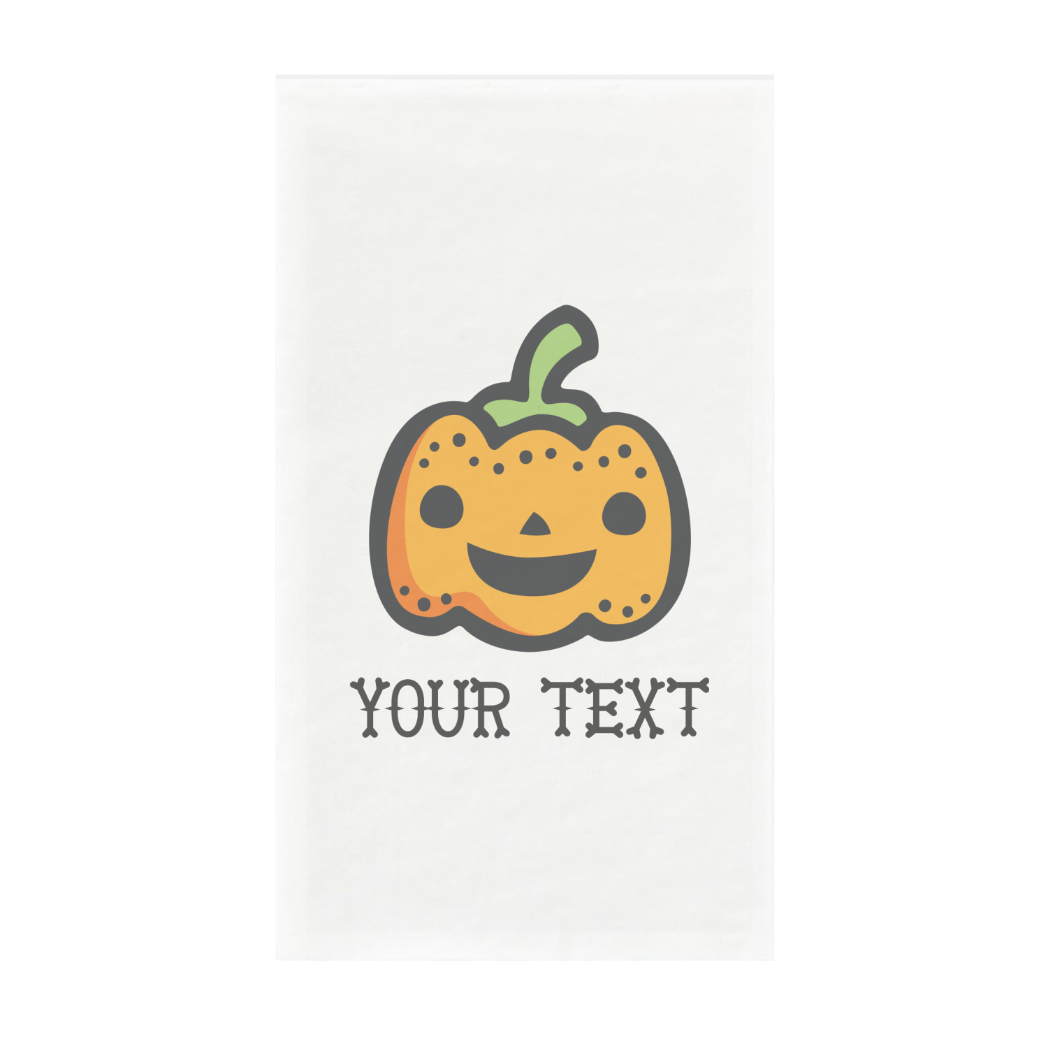 The design features a fun-loving pumpkin as the main focus. He even has a cute little smile on his face that will make you smile right back. The background is a subtle striped one with yellow and orange as the colors. Your personalization or greeting goes directly underneath your pumpkin friend. The coordinating design even has a cute little ghost who thinks that you are "bootiful" and "spooktacular."