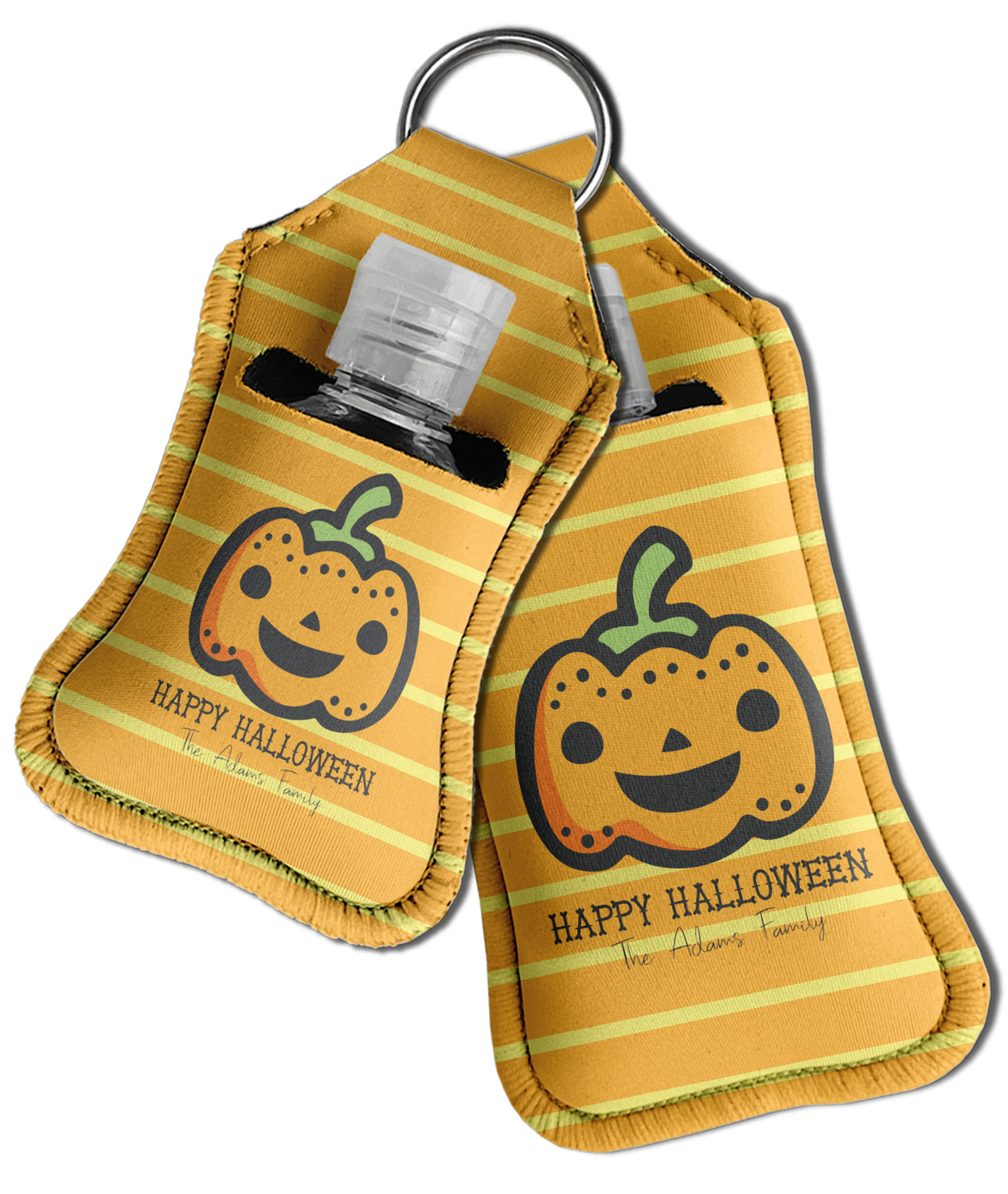 Each hand sanitizer holder comes with its own empty travel-sized, refillable hand sanitizer sure to fit snug in your customized sanitizer case! Our hand sanitizer cases are a durable, yet soft neoprene material sure to last any daily activities or travel agenda. Customize and personalize a hand sanitizer bottle holder with one of our two sizes - small (4.25" x 2.25") or large (5.5" x 2.5"). Each travel sanitizer holder comes with a keyring for attachment on bags, keys, or more!