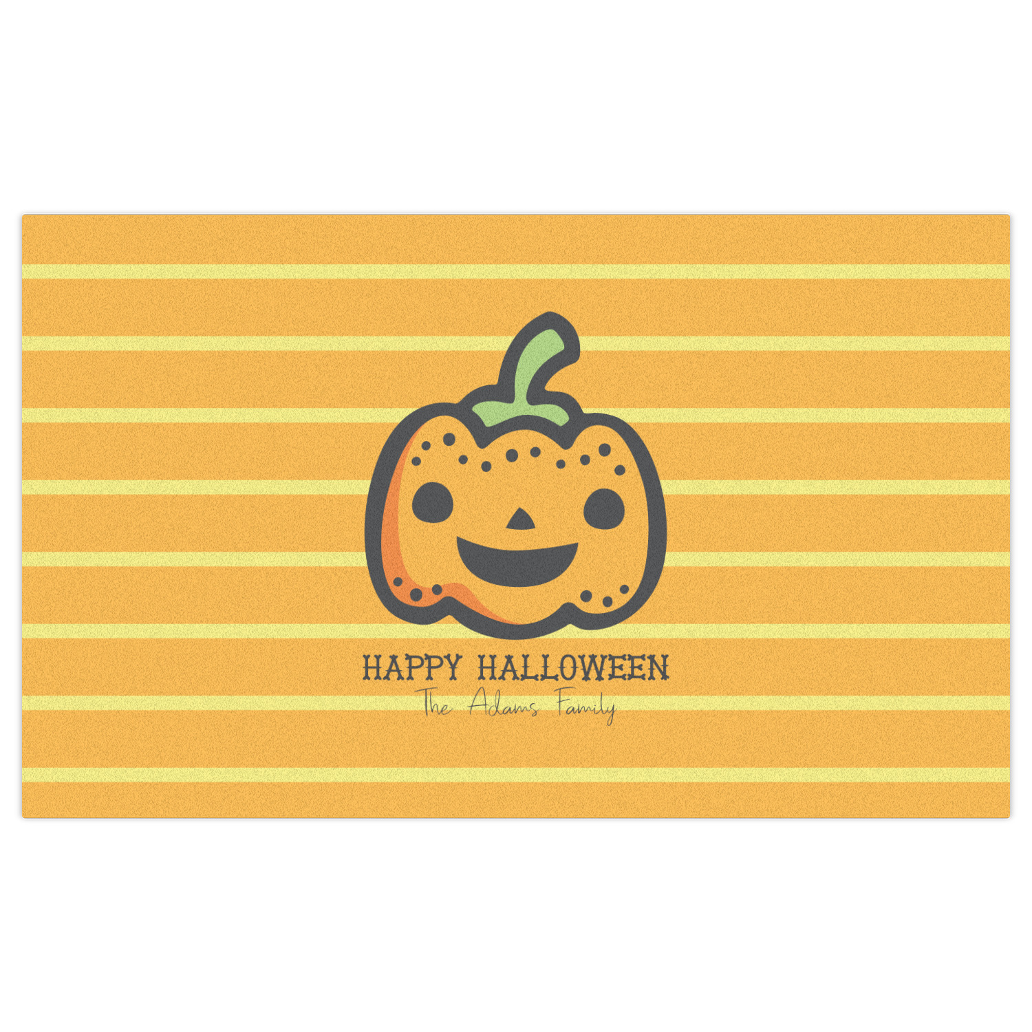 The design features a fun-loving pumpkin as the main focus. He even has a cute little smile on his face that will make you smile right back. The background is a subtle striped one with yellow and orange as the colors. Your personalization or greeting goes directly underneath your pumpkin friend. The coordinating design even has a cute little ghost who thinks that you are "bootiful" and "spooktacular."