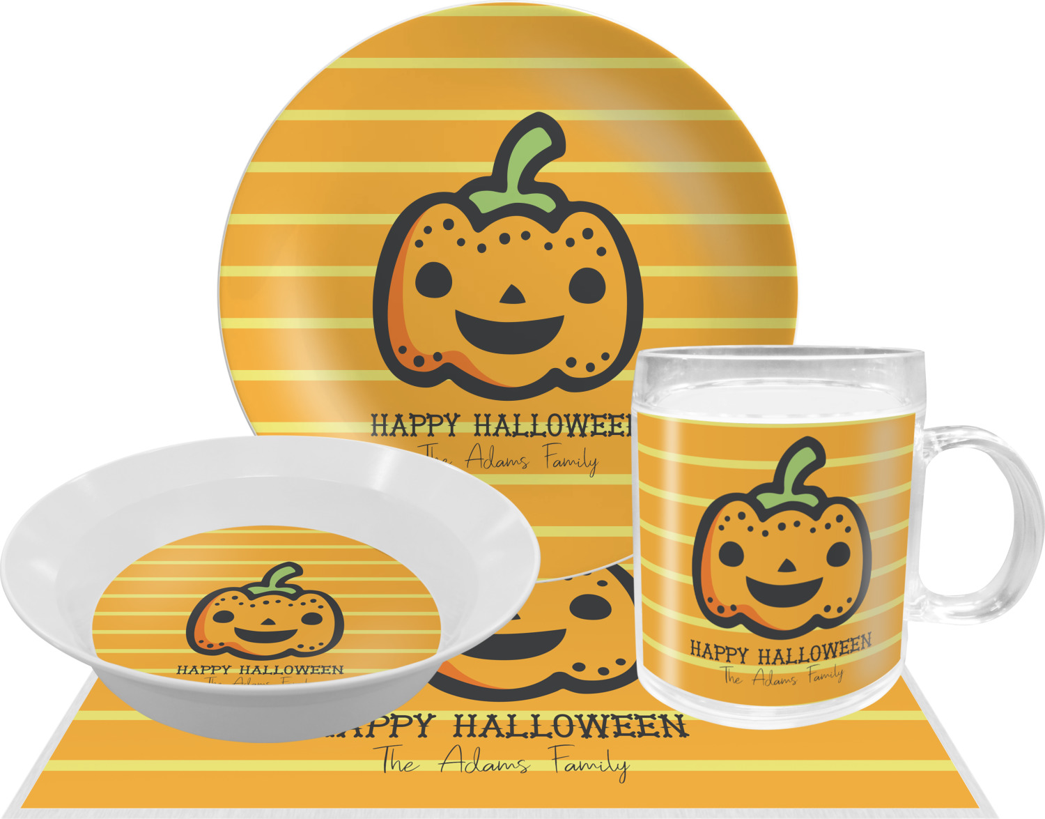 The design features a fun-loving pumpkin as the main focus. He even has a cute little smile on his face that will make you smile right back. The background is a subtle striped one with yellow and orange as the colors. Your personalization or greeting goes directly underneath your pumpkin friend. The coordinating design even has a cute little ghost who thinks that you are "bootiful" and "spooktacular."