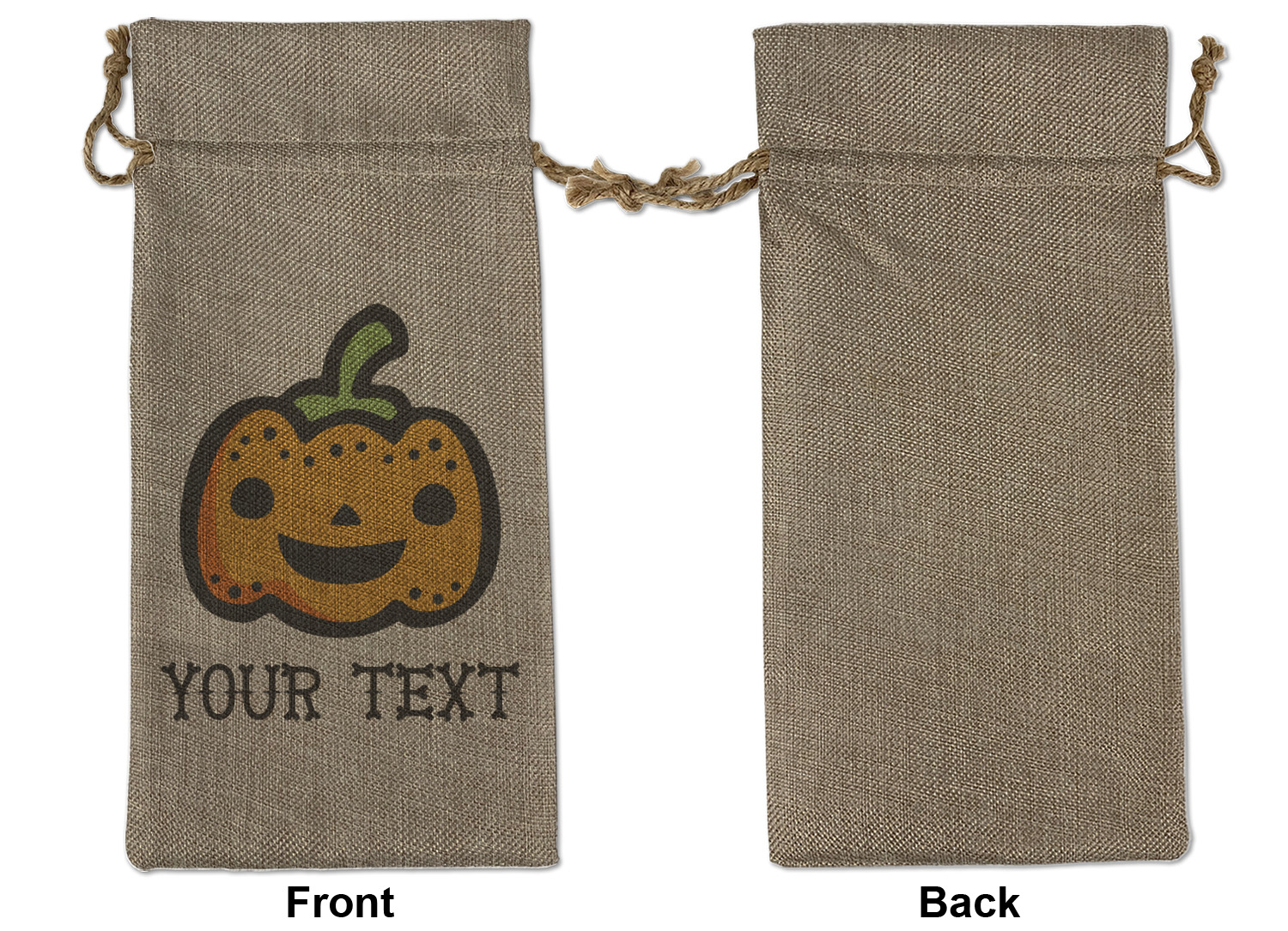 We sell our Burlap Gift Bags in 3 variant sized bags. Made with burlap polyester, each personalized bag can be secured with a twine drawstring pull. Your custom design is available to print on one side or both sides - completely up to you! The sizes of the bags measure approximately 4.5" x 6.5" for the smallest size, 6.5" x 8.0" for the medium size, and 6.5" x 13.5" for the large-sized bag.