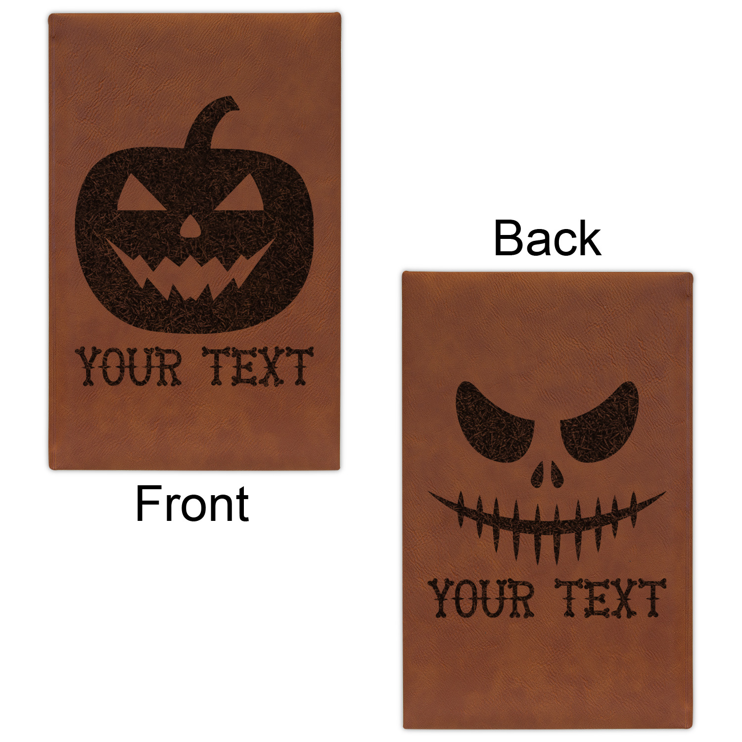 The faux leather covers are a rich cognac / rawhide color and can be customized with your design. From a simple name or monogram or a logo to a detailed mandala - the choice for customization & personalization is truly yours. Customize one of our designs or upload your own.