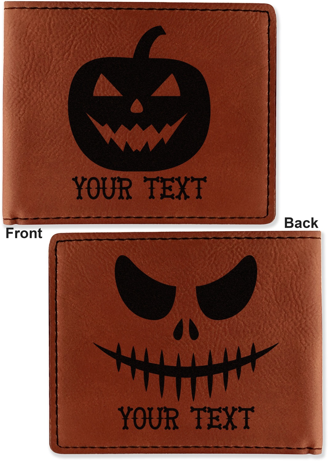 Your bifold wallet will be personalized by laser engraving, which will be a black color on the wallet. Choose a graphic, text, or monogram to personalize your wallet. There are thousands of choices in our design center.