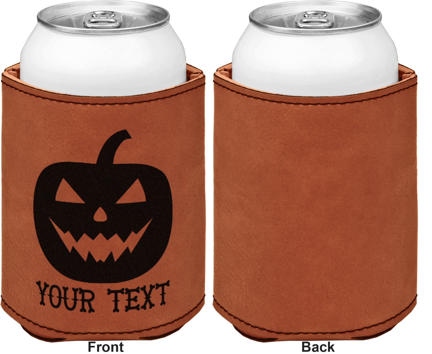 This can sleeve is made from a cognac-brown leatherette and stitched with a sturdy, black thread. A slim padding lines the inside of your can sleeve to allow for a better fit once your drink is inserted. The sleeve itself measures at 4 by 4.5 inches, allowing this custom can sleeve to accommodate most canned drinks. Your personalized design can be engraved on the front and back, or solely the front. When laser-engraved, your design appears as a black coloration which contrasts the leatherette nicely.