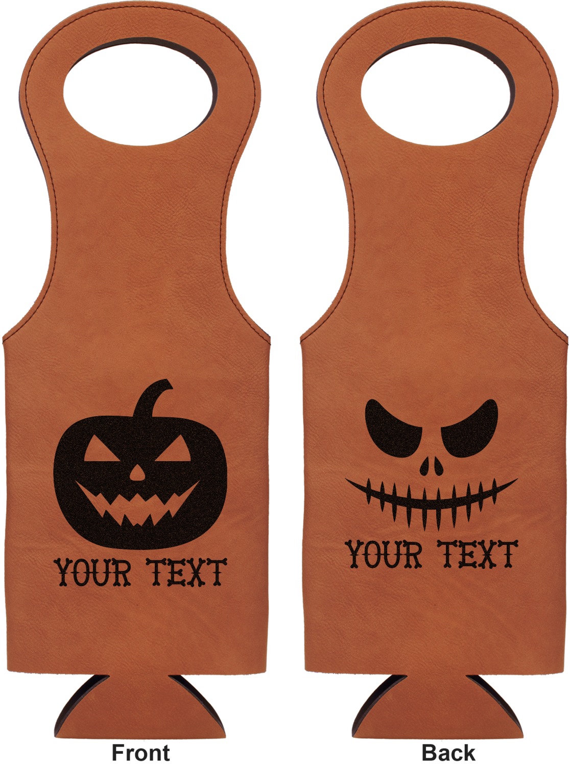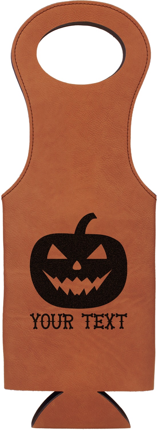 This wine carrier is made from a stunning leatherette, in a cognac-brown color. Strong, black stitching lines the sides of your wine bottle bag and provides extra durability. The interior is lined with a padded, black material to allow for a snug fit once your bottle is placed inside. At the top of this wine gift bag, you'll find two oval shaped handles that elegantly complements the rest of the bag's style. We provide you with the option of laser-engraving the front, or the front and back of your new personalized wine bag!