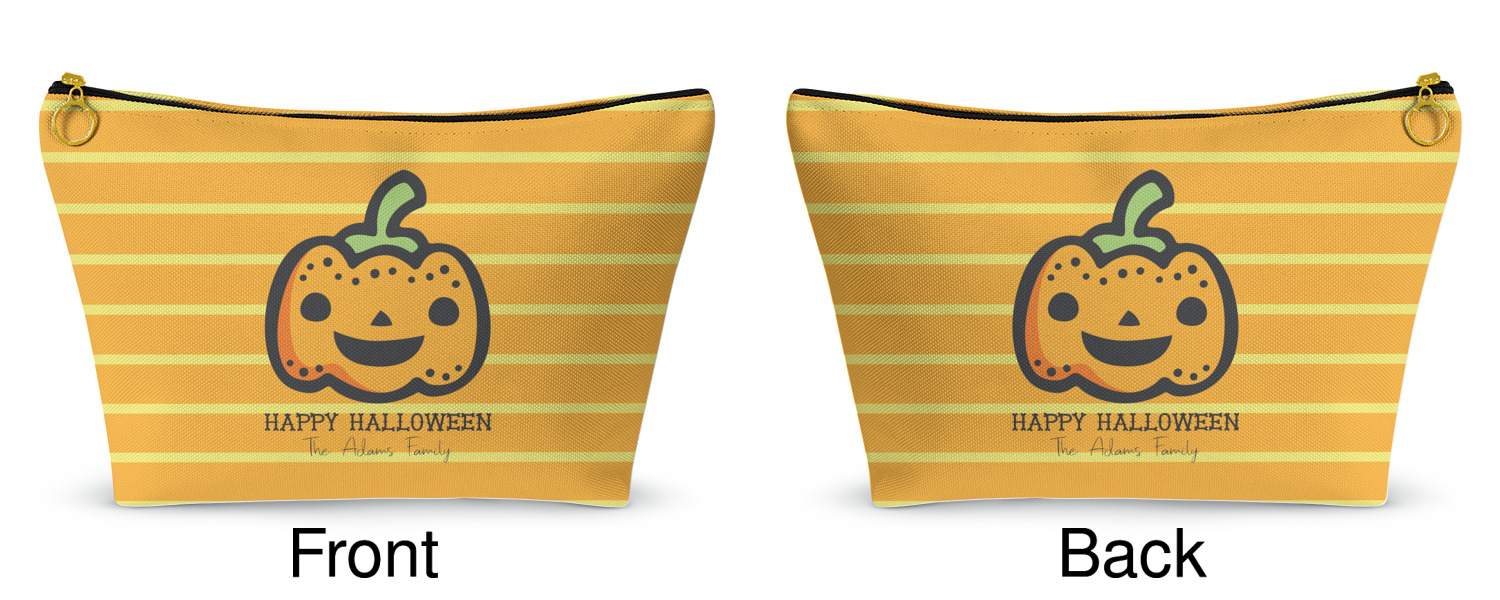 The design features a fun-loving pumpkin as the main focus. He even has a cute little smile on his face that will make you smile right back. The background is a subtle striped one with yellow and orange as the colors. Your personalization or greeting goes directly underneath your pumpkin friend. The coordinating design even has a cute little ghost who thinks that you are "bootiful" and "spooktacular."