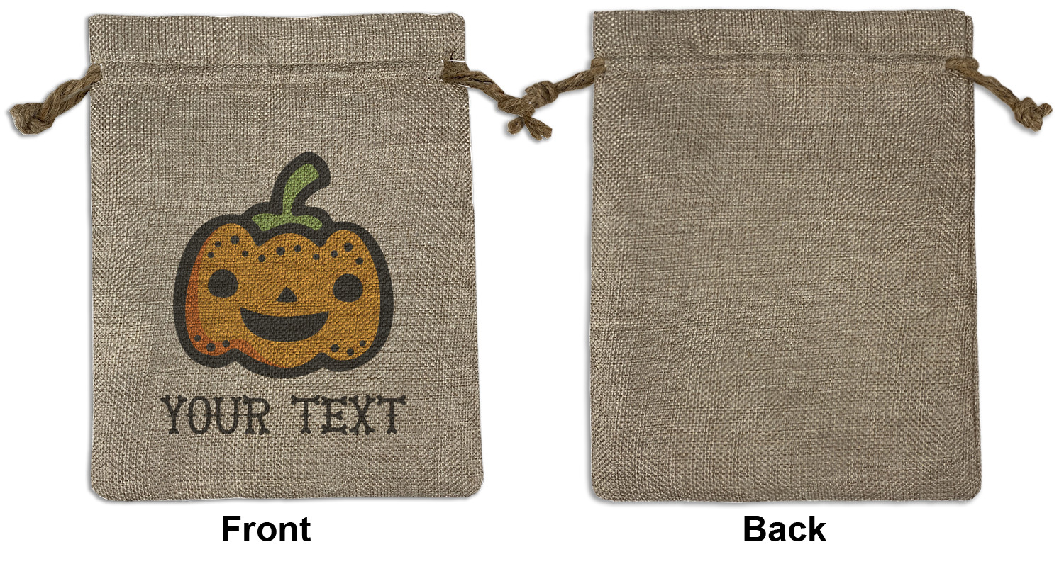 We sell our Burlap Gift Bags in 3 variant sized bags. Made with burlap polyester, each personalized bag can be secured with a twine drawstring pull. Your custom design is available to print on one side or both sides - completely up to you! The sizes of the bags measure approximately 4.5" x 6.5" for the smallest size, 6.5" x 8.0" for the medium size, and 6.5" x 13.5" for the large-sized bag.
