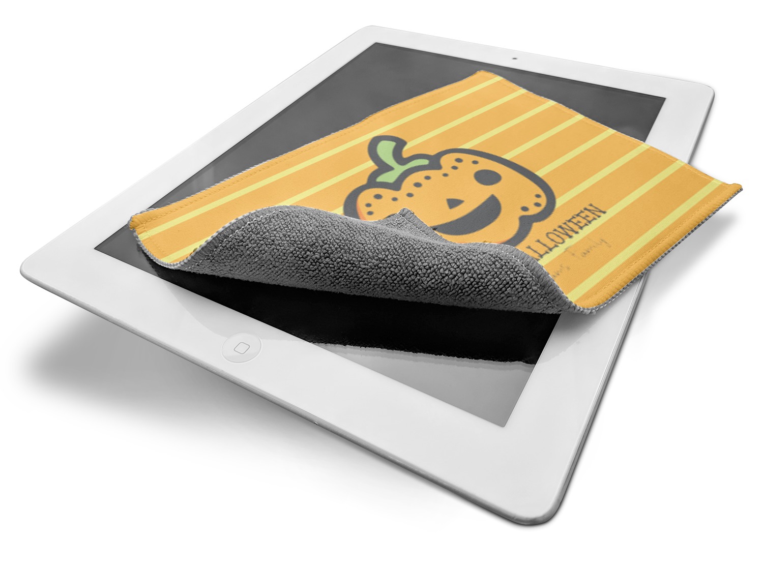 The back of this cleaning cloth is made from a gentle, grey microfiber material, that is masterful at removing smudges, grease, and fingerprints from lenses or electronic screens. The front side of the screen cleaner displays your personalized design in vibrant color. A beautiful stitch lines the edges and secures the microfiber to the polyester top. We provide you with the option of customizing this screen horizontally or vertically, depending on your preferences.