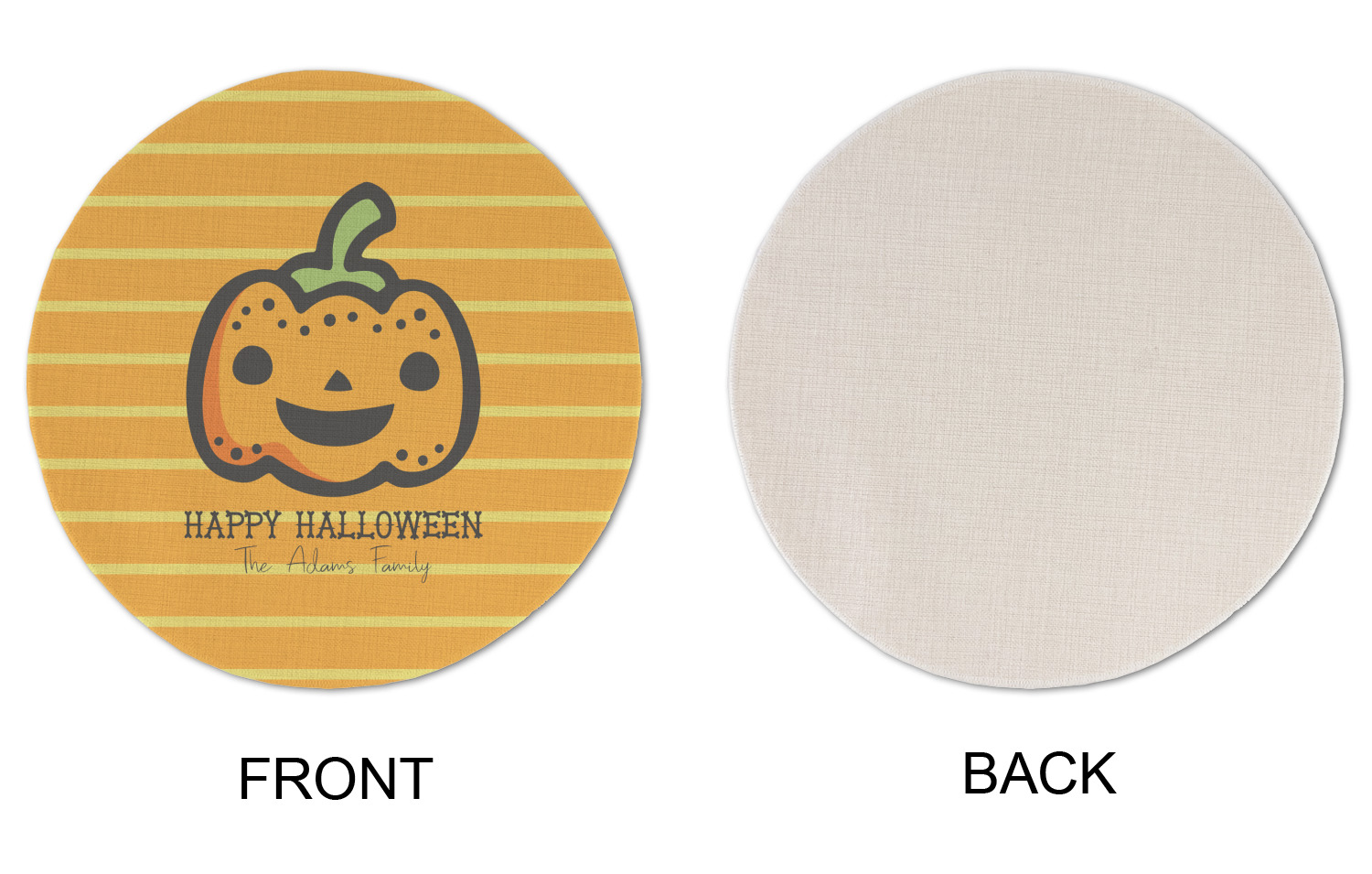 The design features a fun-loving pumpkin as the main focus. He even has a cute little smile on his face that will make you smile right back. The background is a subtle striped one with yellow and orange as the colors. Your personalization or greeting goes directly underneath your pumpkin friend. The coordinating design even has a cute little ghost who thinks that you are "bootiful" and "spooktacular."