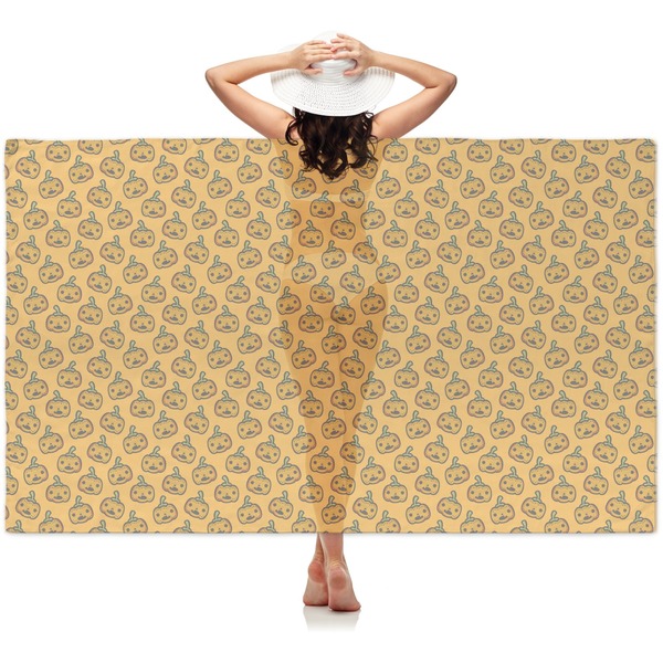 The design features a fun-loving pumpkin as the main focus. He even has a cute little smile on his face that will make you smile right back. The background is a subtle striped one with yellow and orange as the colors. Your personalization or greeting goes directly underneath your pumpkin friend. The coordinating design even has a cute little ghost who thinks that you are "bootiful" and "spooktacular."