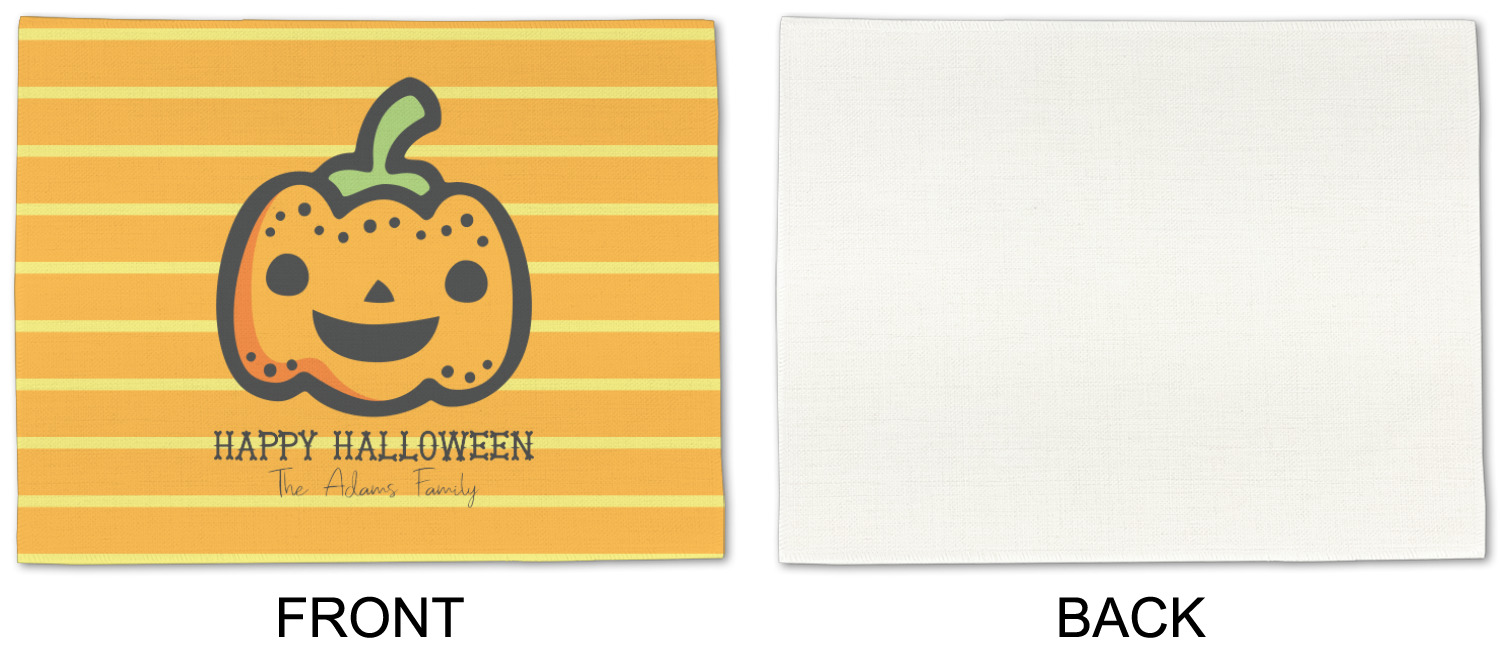 The design features a fun-loving pumpkin as the main focus. He even has a cute little smile on his face that will make you smile right back. The background is a subtle striped one with yellow and orange as the colors. Your personalization or greeting goes directly underneath your pumpkin friend. The coordinating design even has a cute little ghost who thinks that you are "bootiful" and "spooktacular."