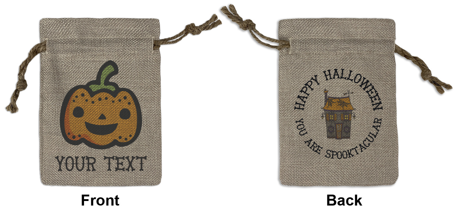 We sell our Burlap Gift Bags in 3 variant sized bags. Made with burlap polyester, each personalized bag can be secured with a twine drawstring pull. Your custom design is available to print on one side or both sides - completely up to you! The sizes of the bags measure approximately 4.5" x 6.5" for the smallest size, 6.5" x 8.0" for the medium size, and 6.5" x 13.5" for the large-sized bag.
